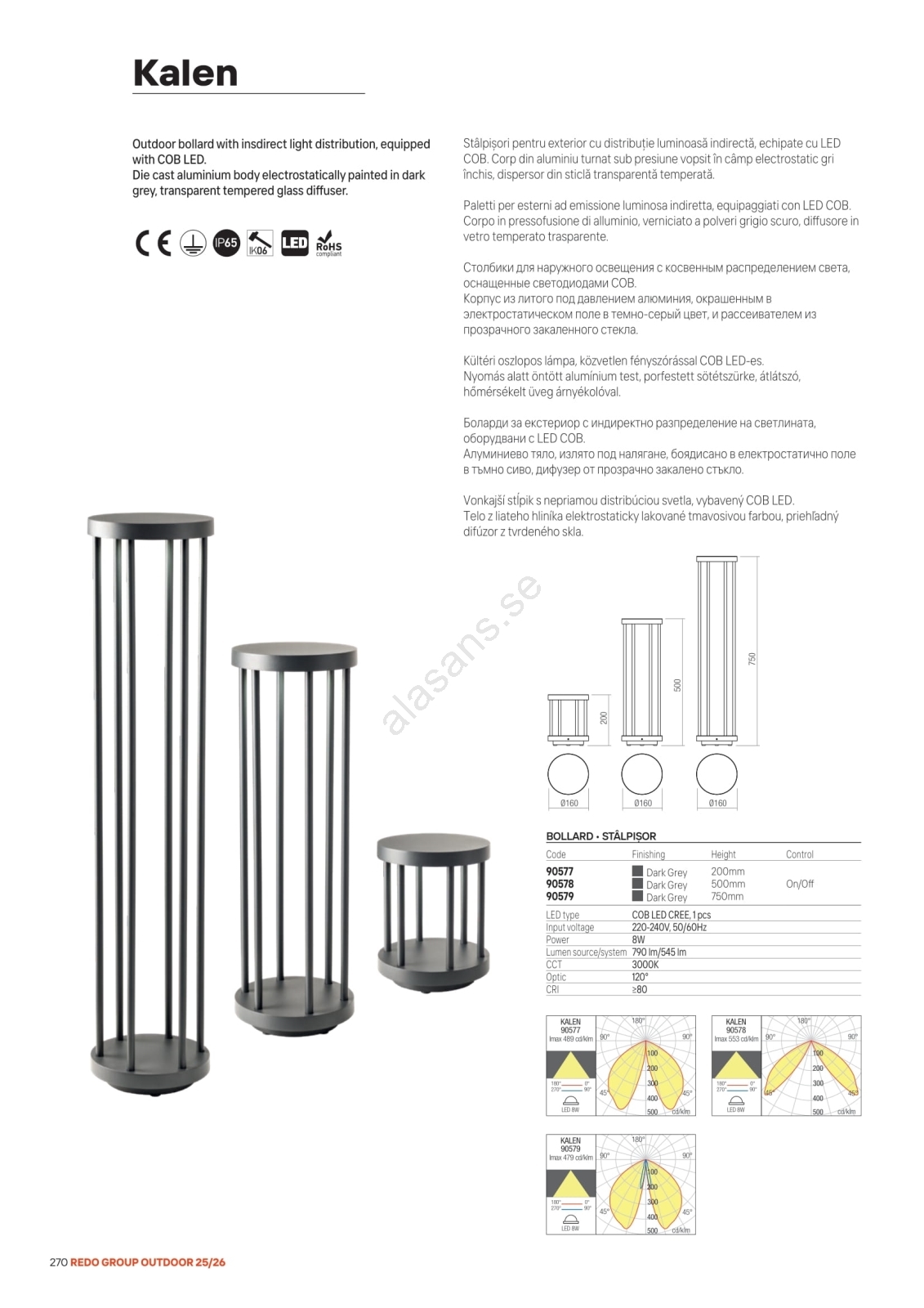 Redo 90579 - LED utomhuslampa KALEN LED/8W/230V 3000K 75 cm IP65 antracit | Alasans