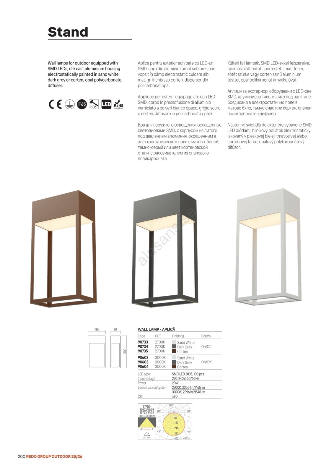 • Redo 90604 - STAND LED utomhusväggarmatur 20W/230V, 3000K, CRI 90, IP65, brun