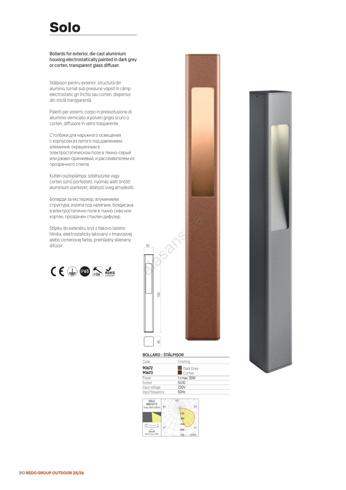 Redo 90672 - Utomhuslampa SOLO 1xGU10/35W/230V 70 cm IP65 antracit | Alasans