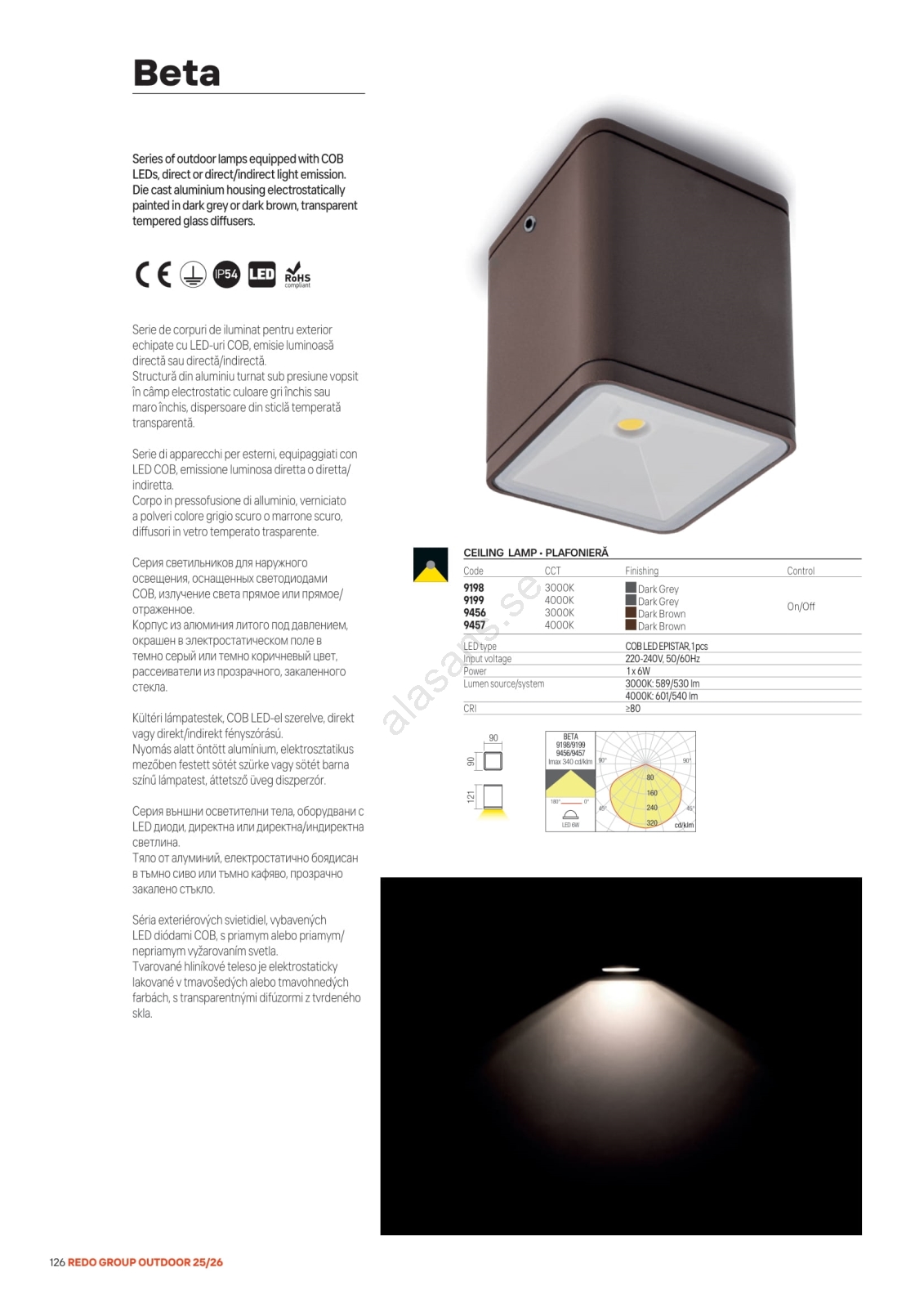 Redo 9080 - BETA LED utomhusvägglampa, 6W, 230V, 3000K, IP54, brun | Alasans