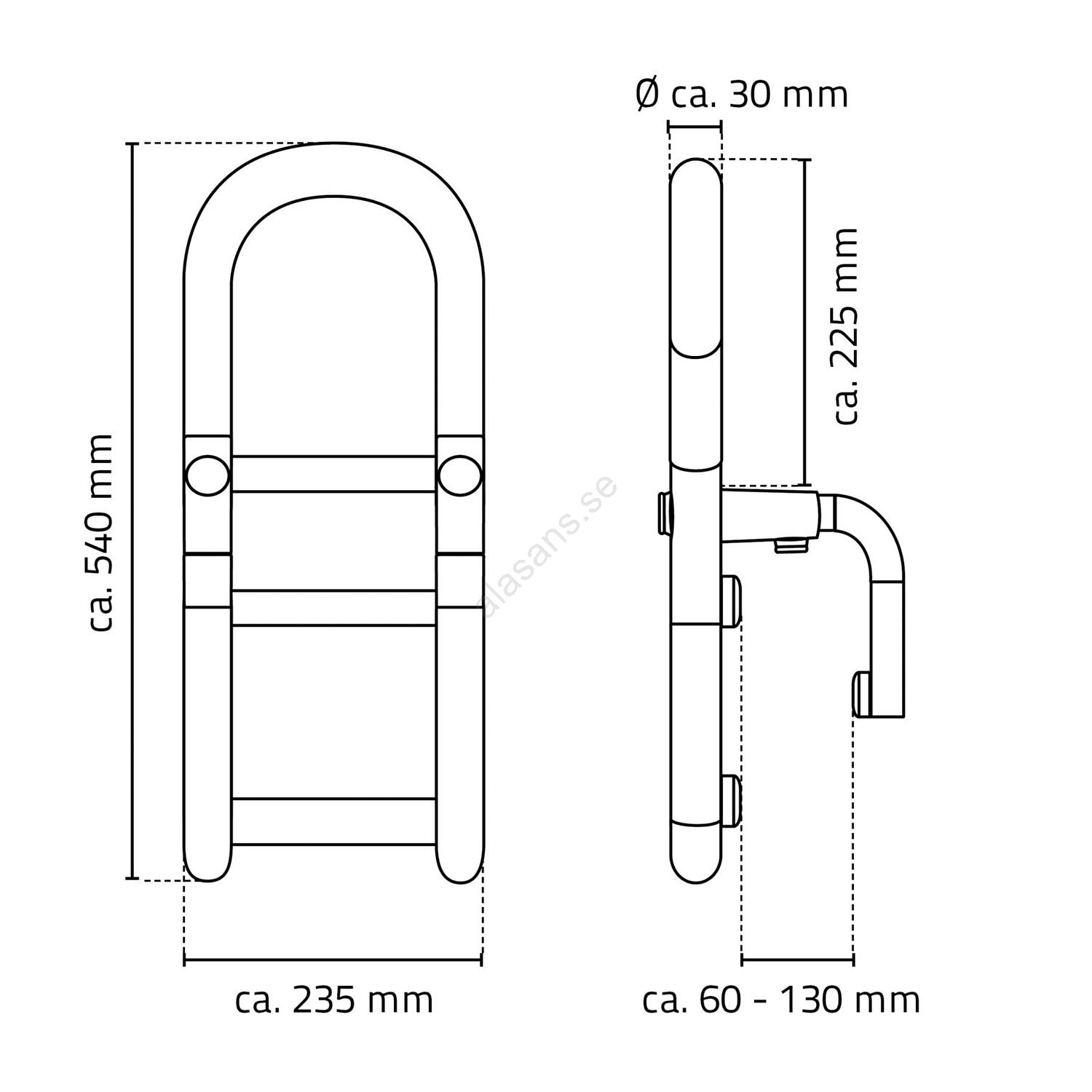• Stödhandtag utformat för trygg in- och urstigning ur badkaret.