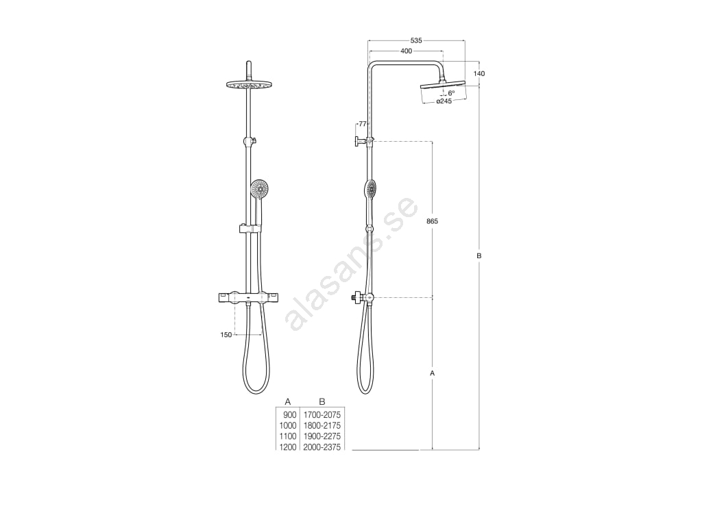• Förpackningen innehåller: duschblandare, handdusch, takdusch, flexibel duschslang, justerbart väggfäste.