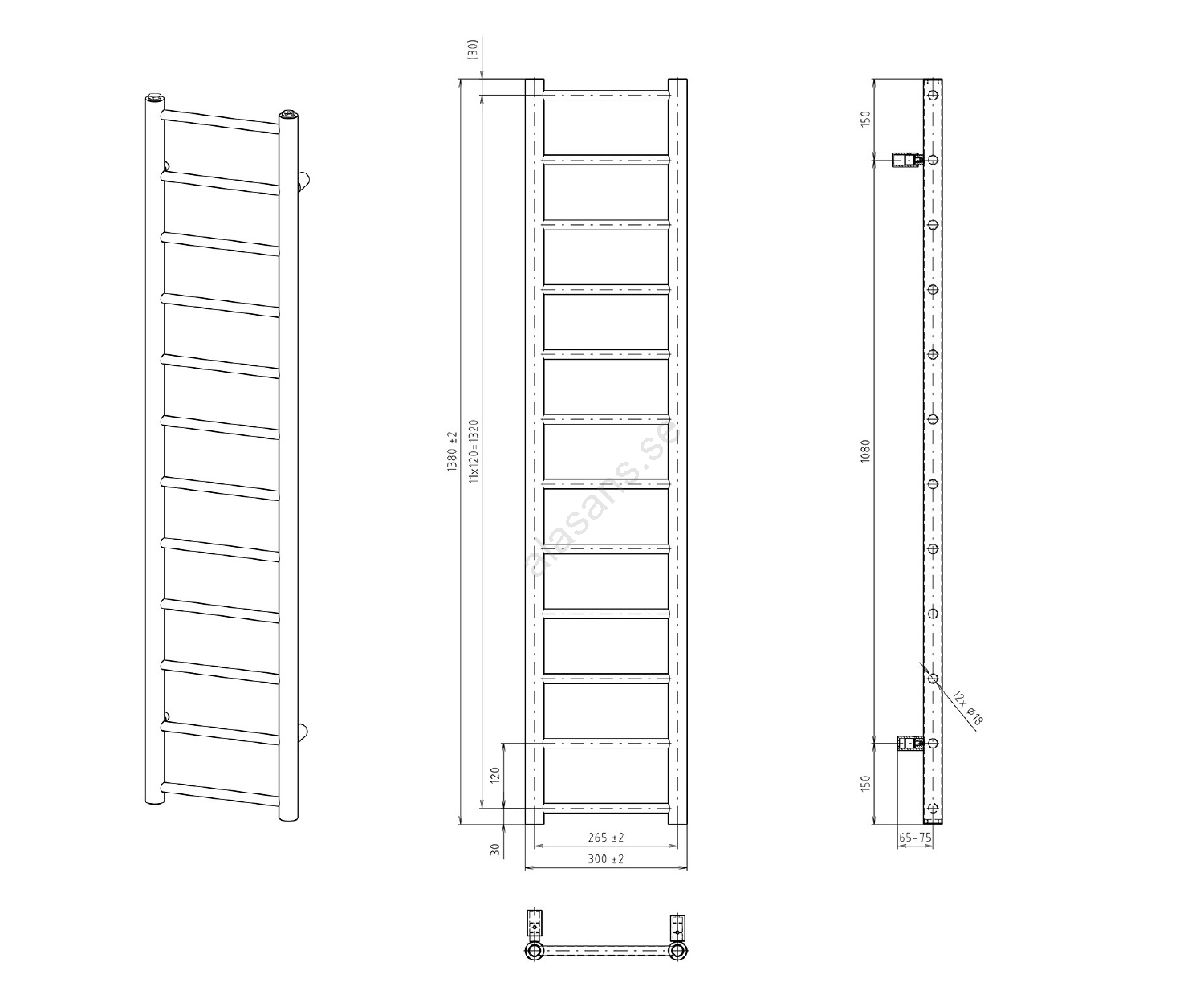 Sapho - Badrumsradiator DINA 278W 30x138 cm matt svart | Alasans