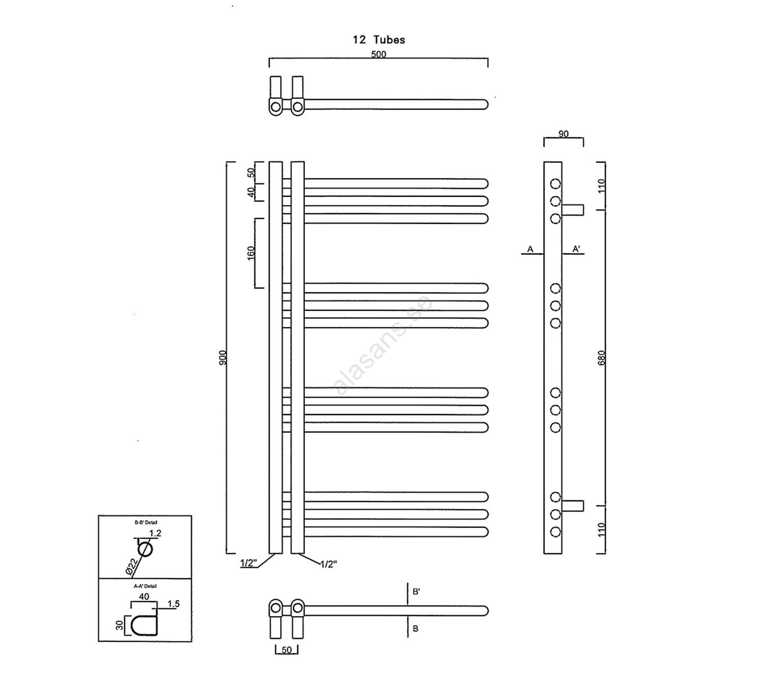 Sapho - Badrumsradiator DORLION 300W/230V 50x90 cm matt svart | Alasans