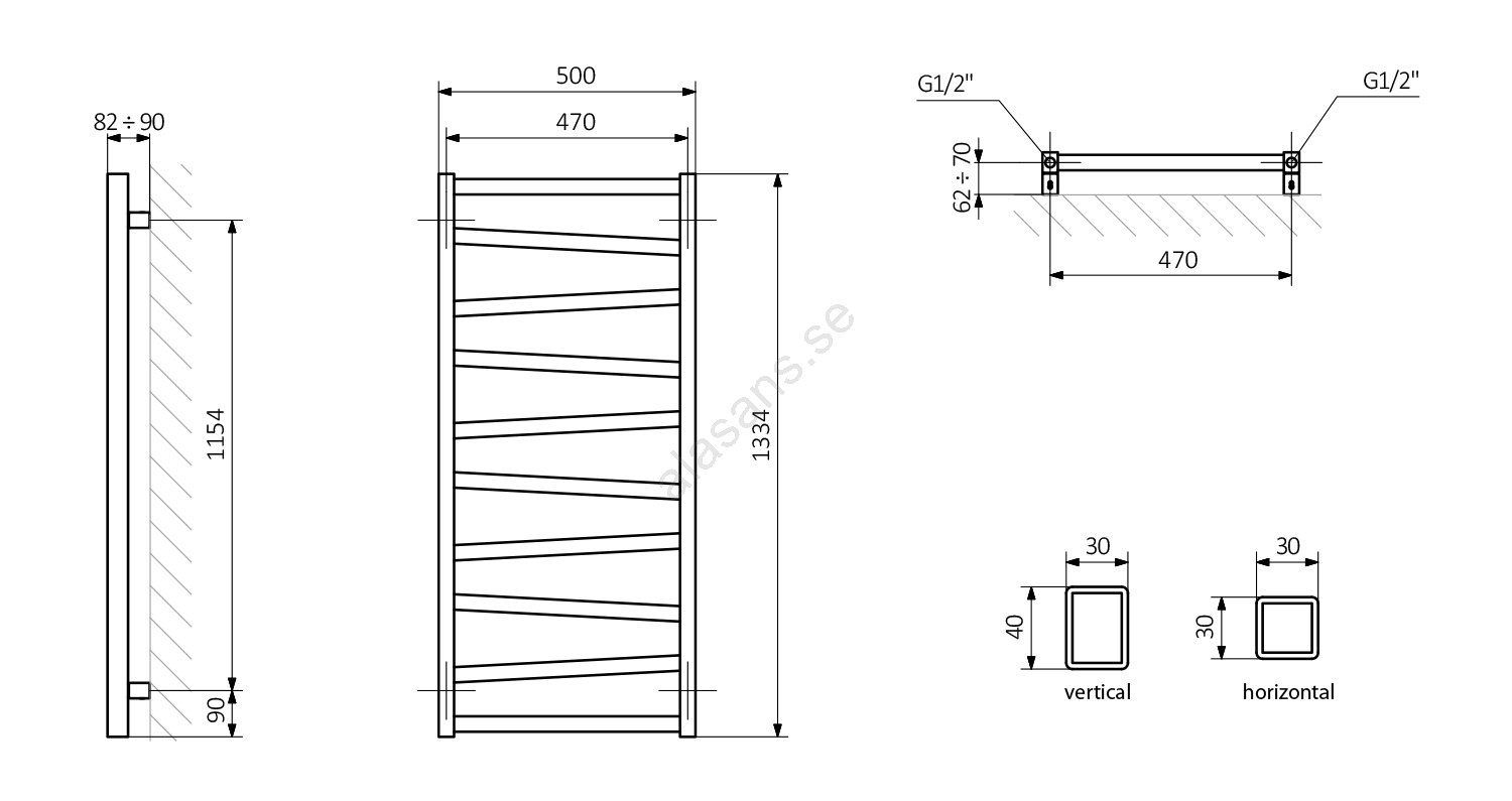 Sapho - Badrumsradiator ZIG 490W/230V 50x133 cm antracit | Alasans