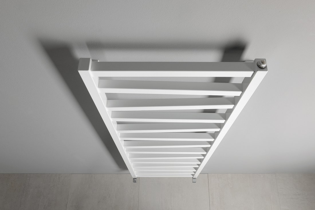 • Radiator med centralrör i olika vinklar framhäver badrummets design.