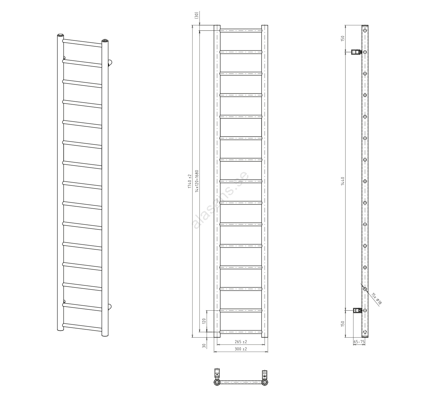 Sapho - Handdukstork DINA 335 W 30 x 174 cm vit | Alasans