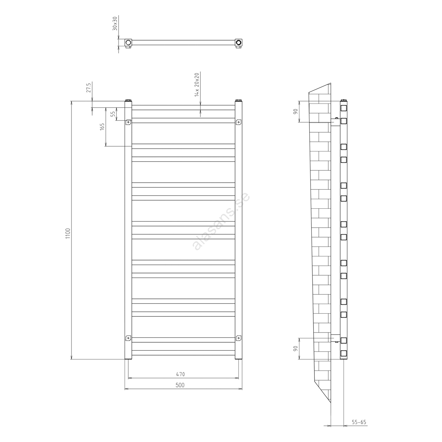 Sapho - Handdukstork METRO DOS 343W/230V 50x110 cm blank krom | Alasans