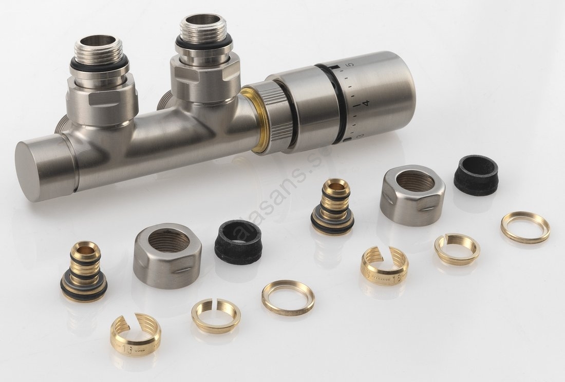 Sapho - Termostatisk anslutningssats för mittanslutning TWIN, matt rostfritt stål | Alasans