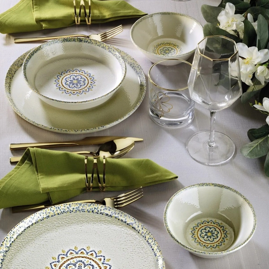 Servis 18 delar, grön/porslin