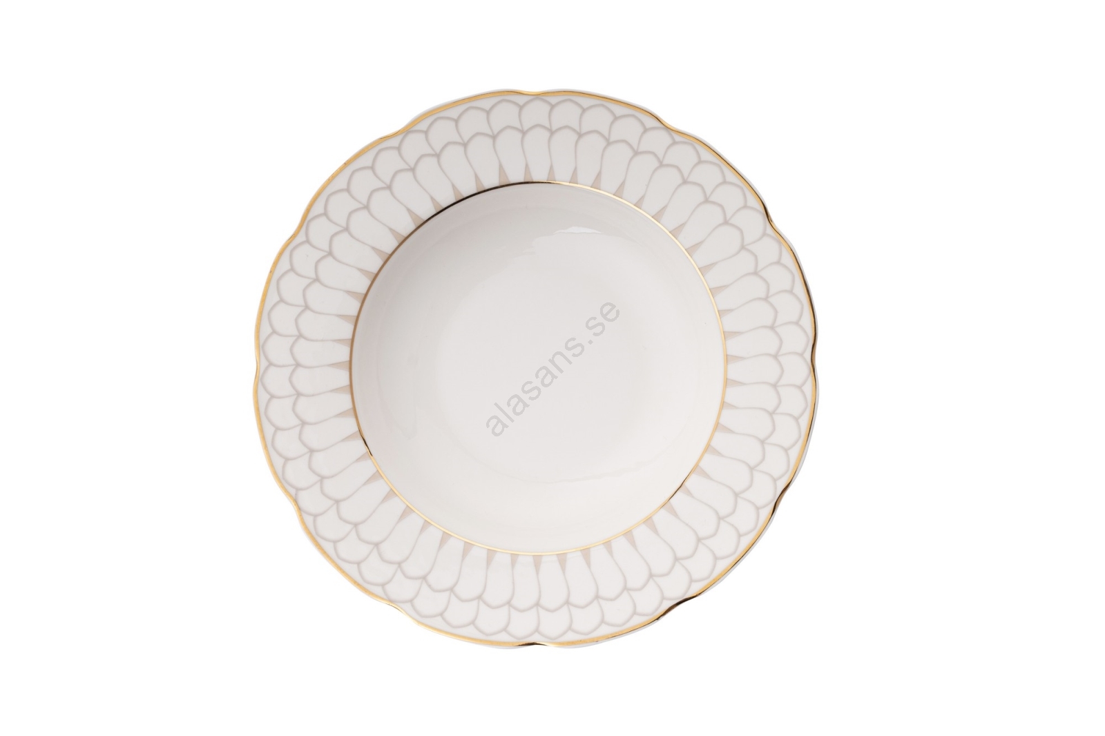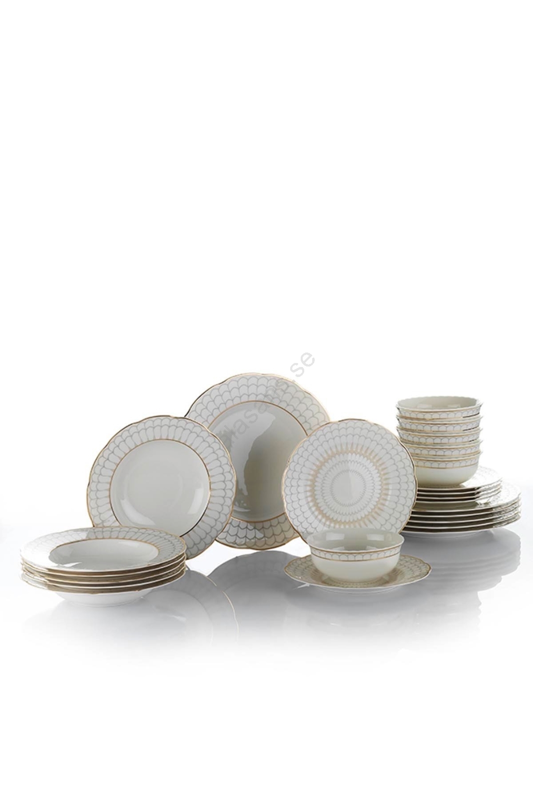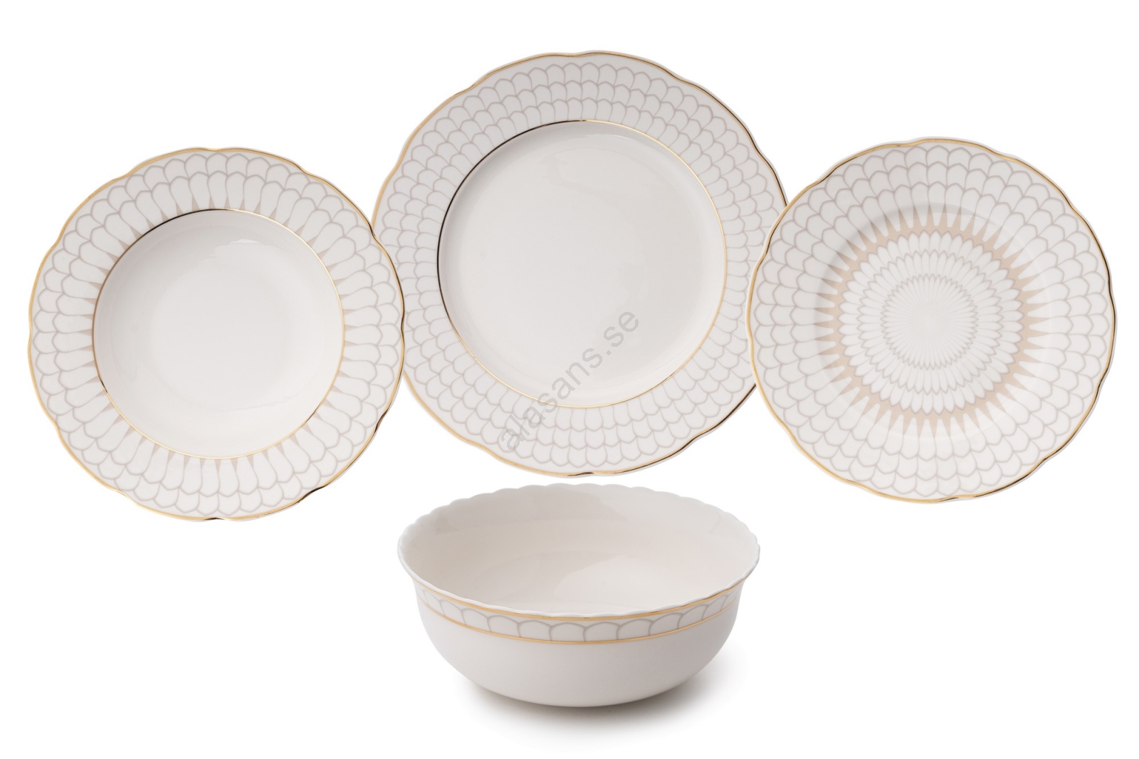 Servisset i porslin, 24 delar, vitt med guldkant | Alasans