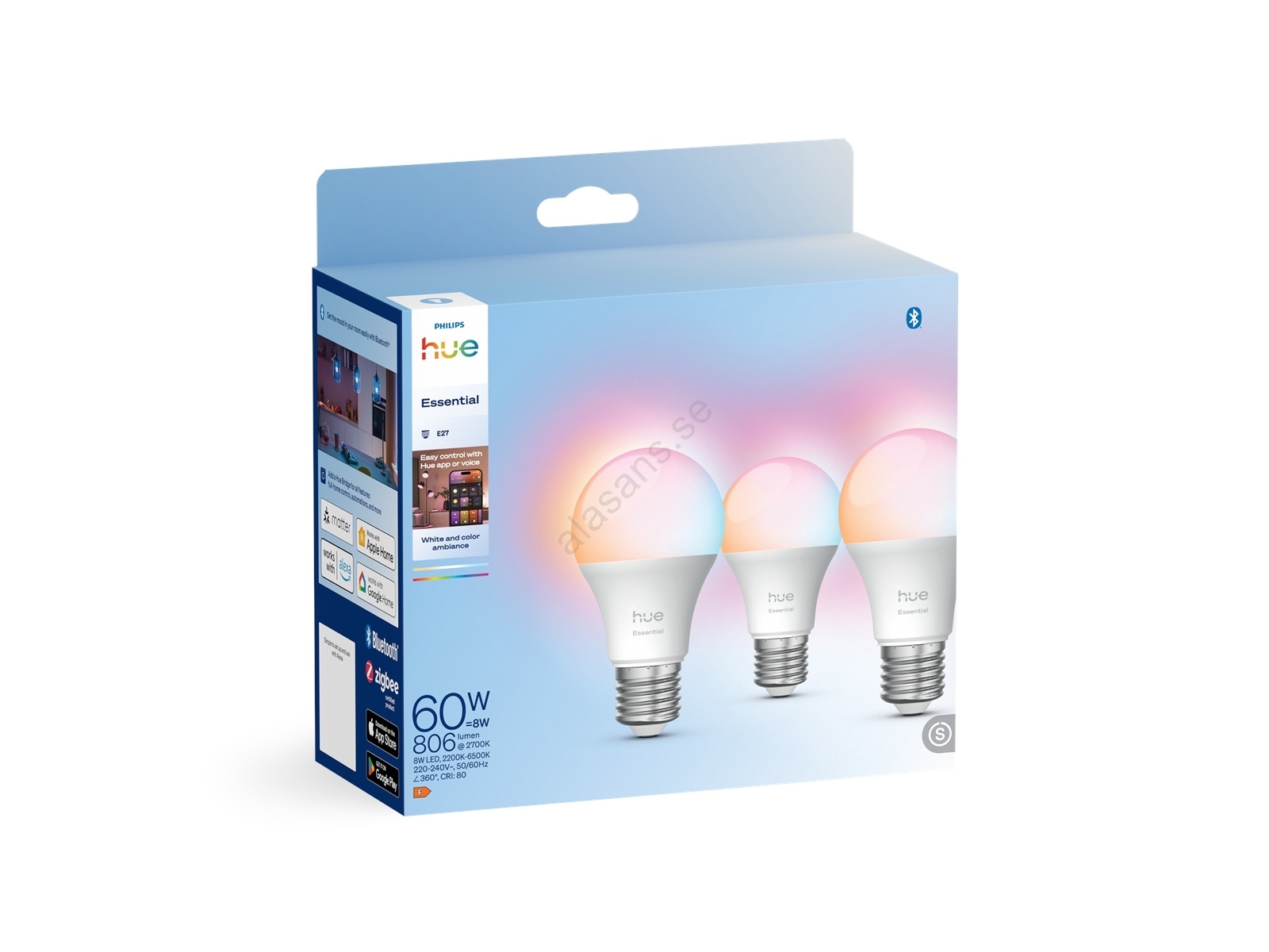 Set med 3 Philips Hue WACA dimbara LED-lampor, E27, 8W, 230V, 2200-6500K | Alasans