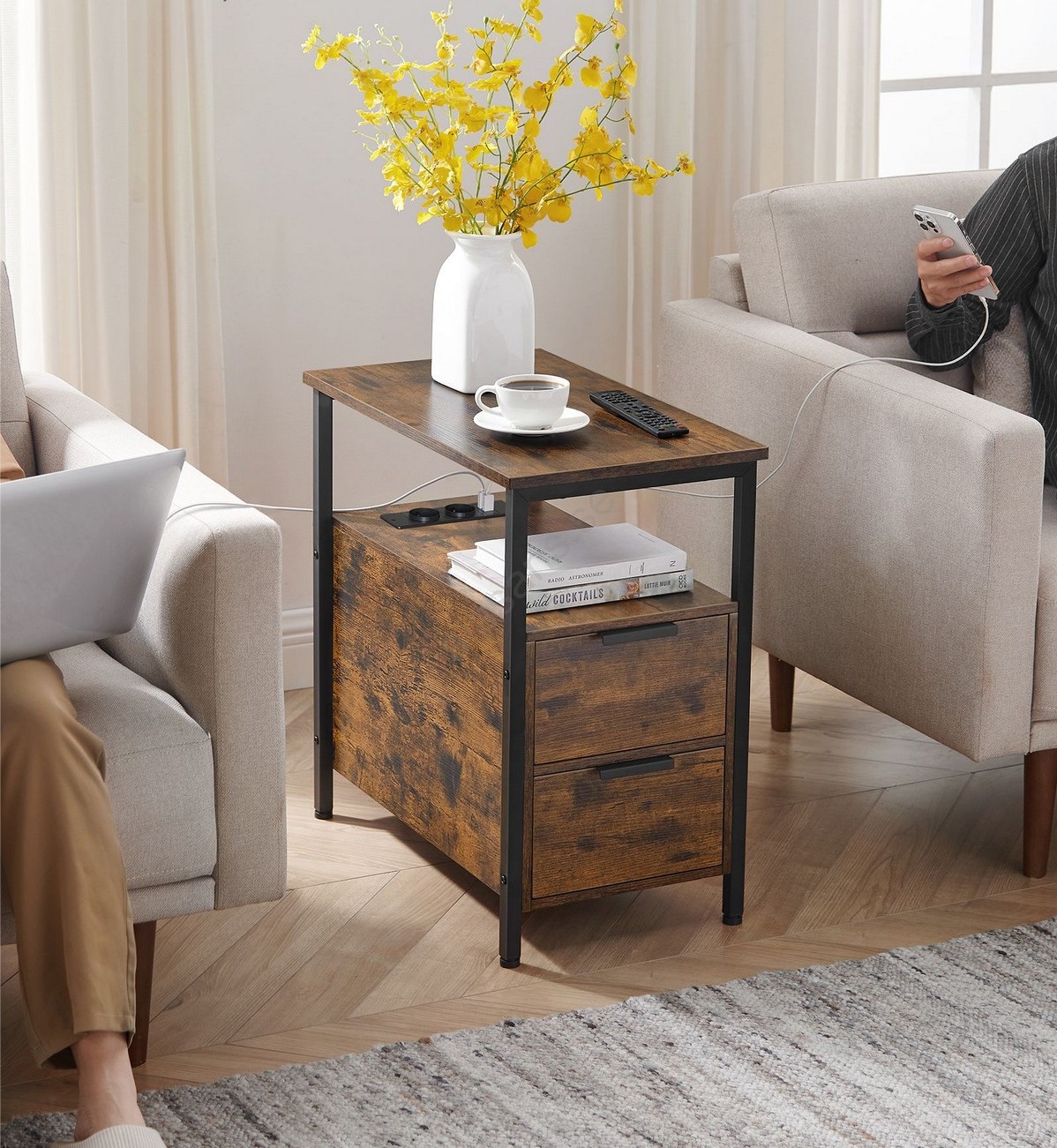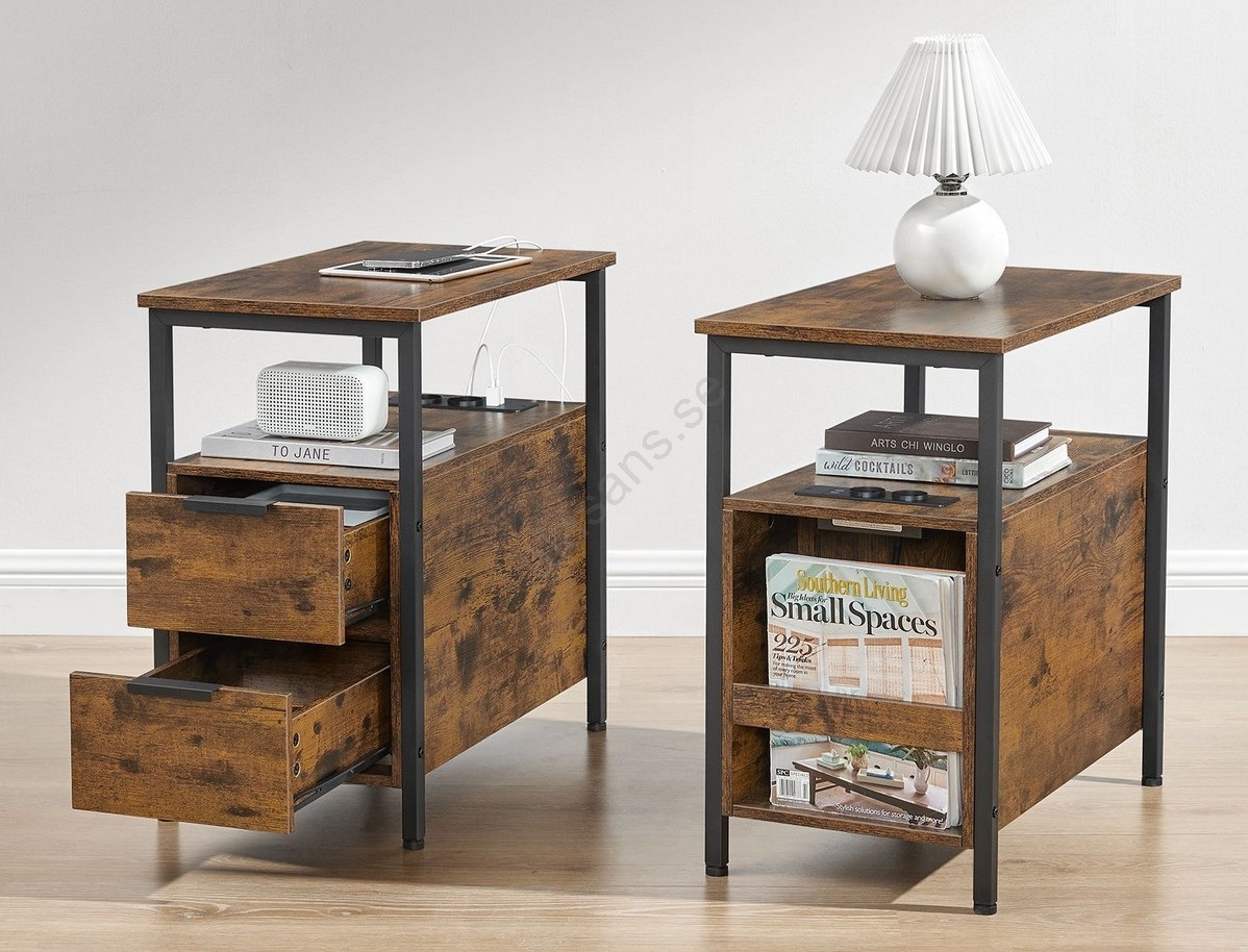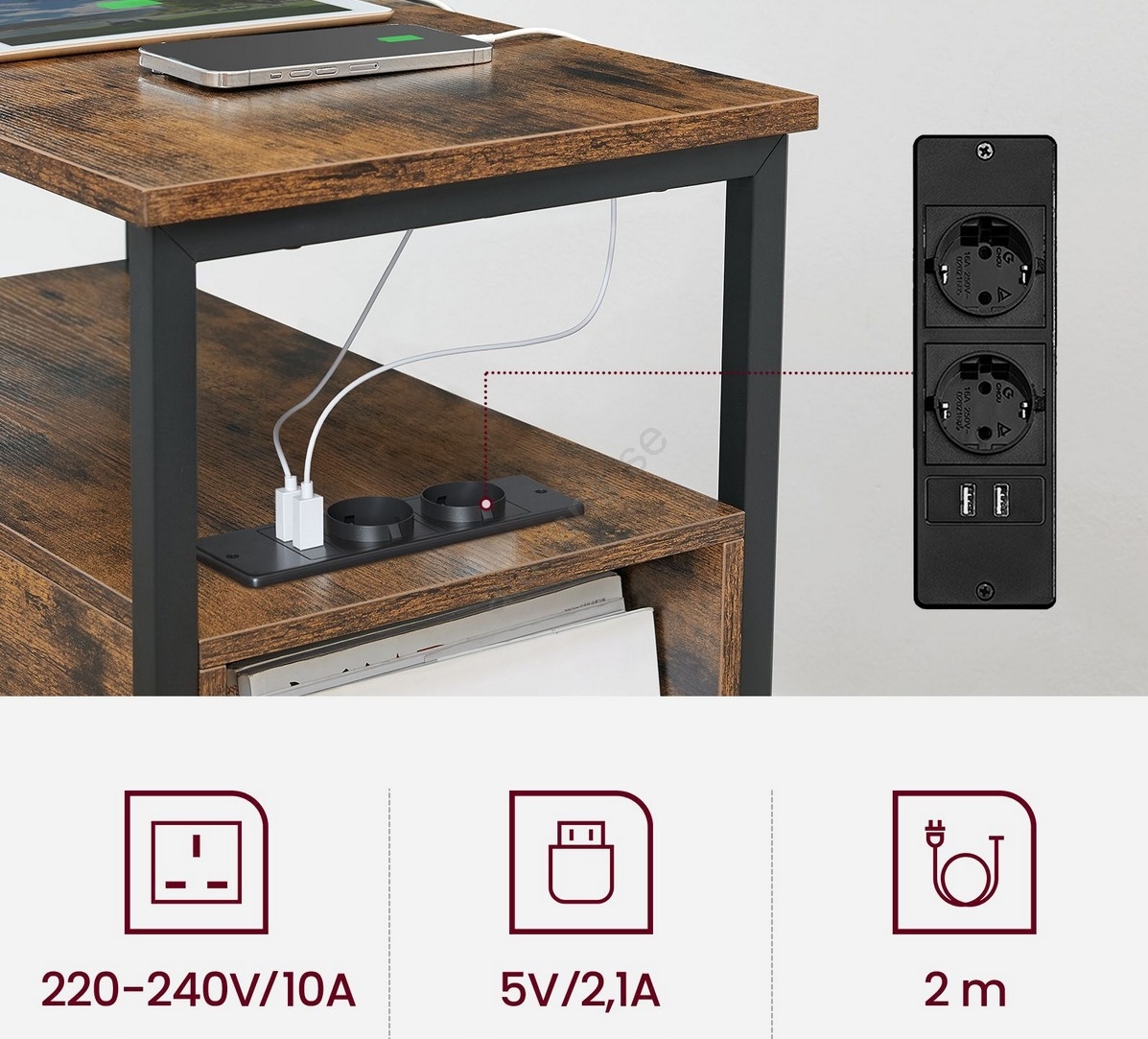 Sidobord med inbyggda eluttag och USB-portar ROD brun/svart | Alasans