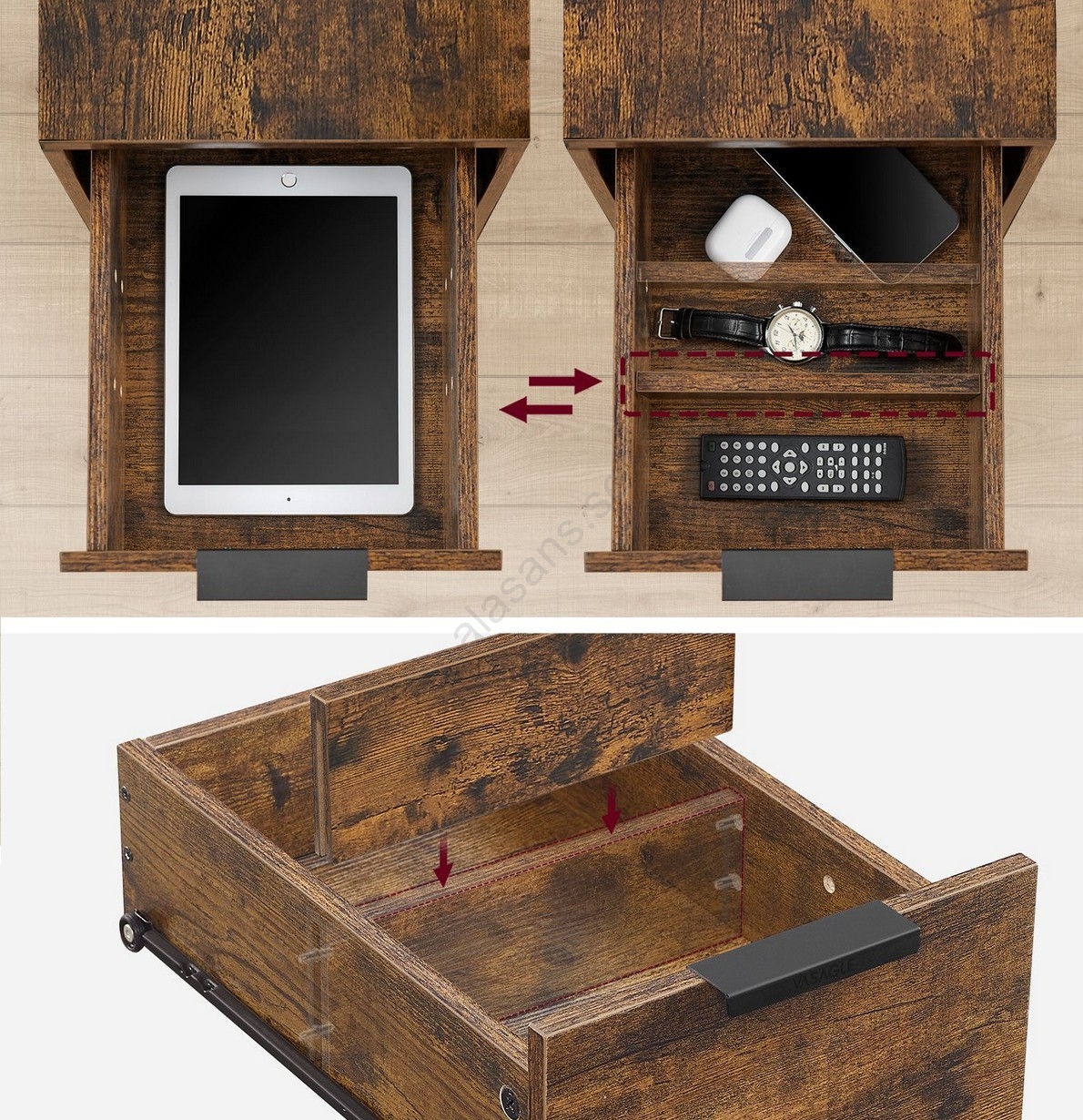 • I de 2 lådorna, som du kan anpassa efter behov, lägg dina böcker, elektronik, kablar, skrivmaterial och andra föremål.