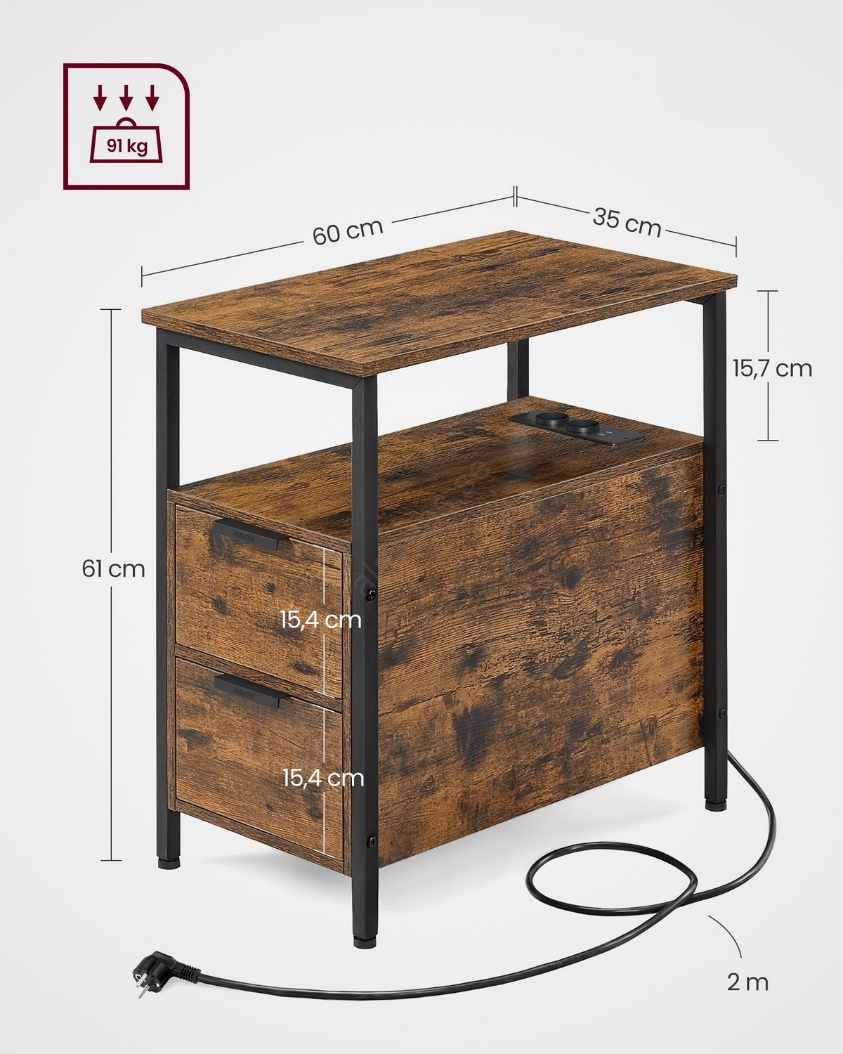 • Sidobord med inbyggda eluttag och USB-portar ROD brun/svart