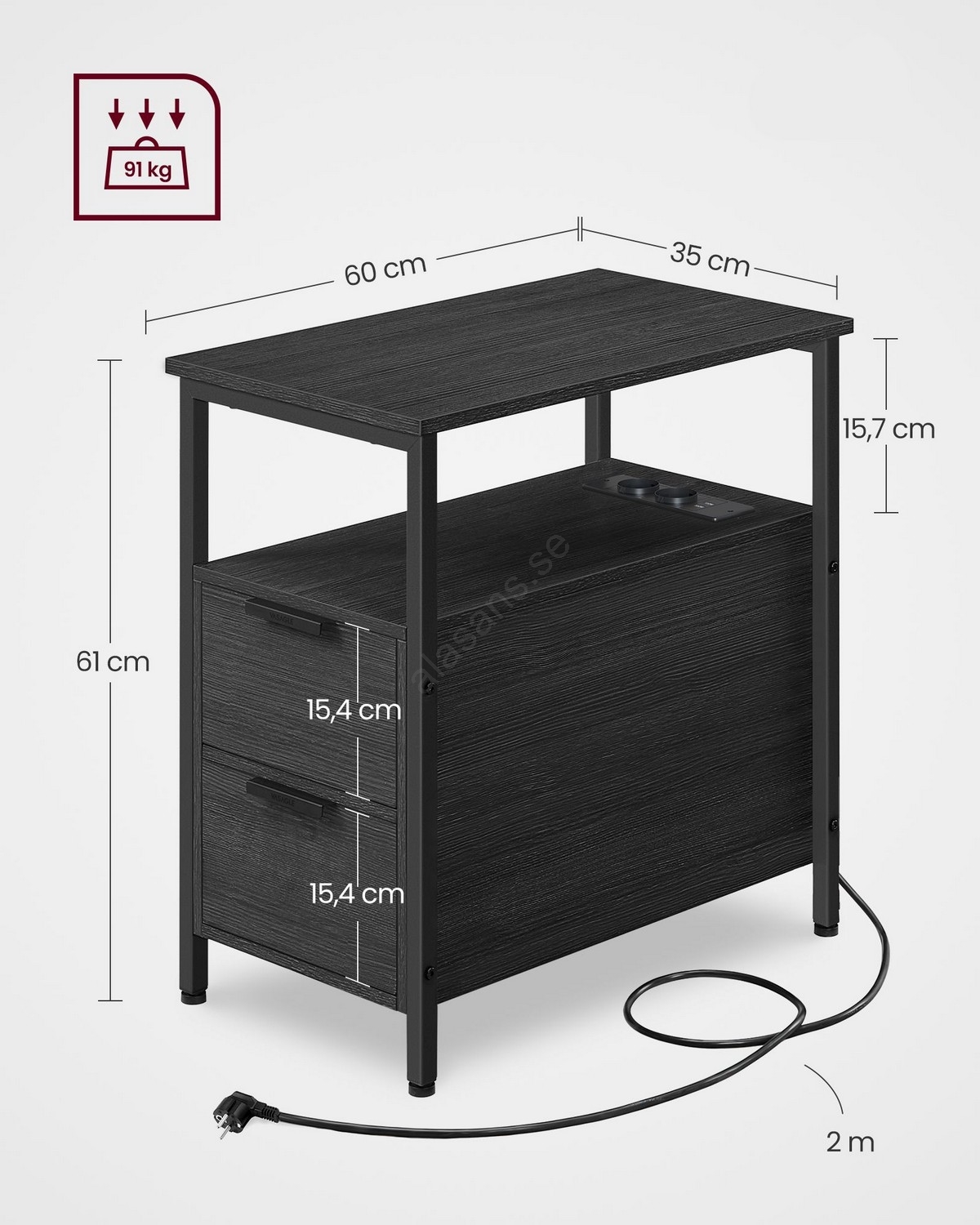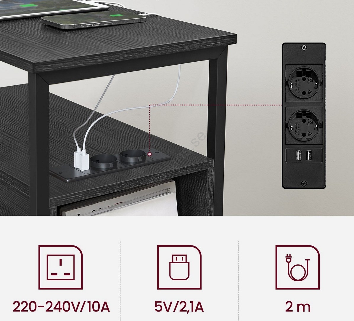 Sidobord med inbyggda eluttag och USB-portar ROD, svart | Alasans