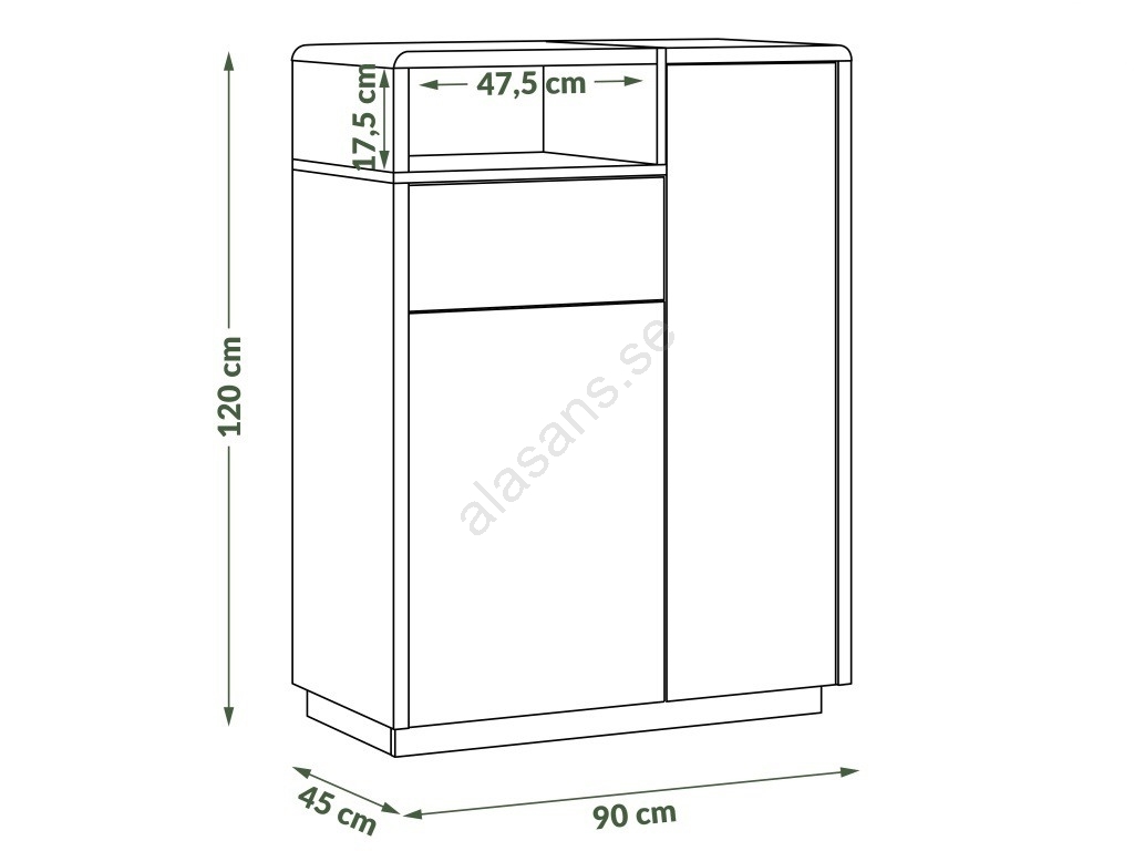• Tack vare sina mått passar den perfekt i små vardagsrum, där den hjälper dig skapa en funktionell och trivsam yta.