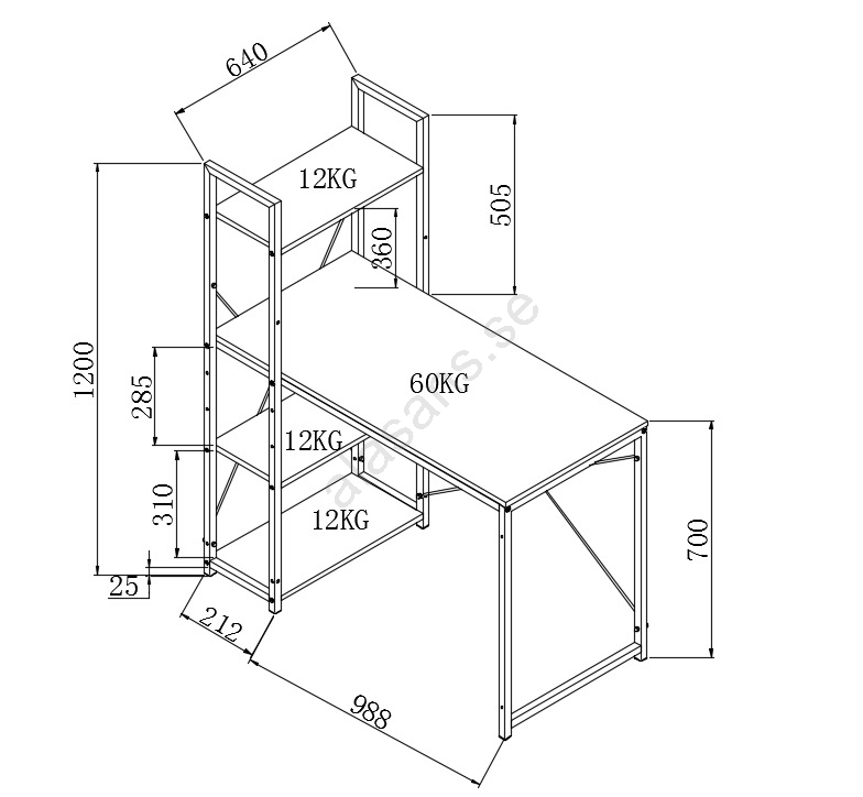 • Tack vare sina mått passar det utmärkt i de flesta rum och hjälper dig skapa en funktionell och trivsam arbetsplats.