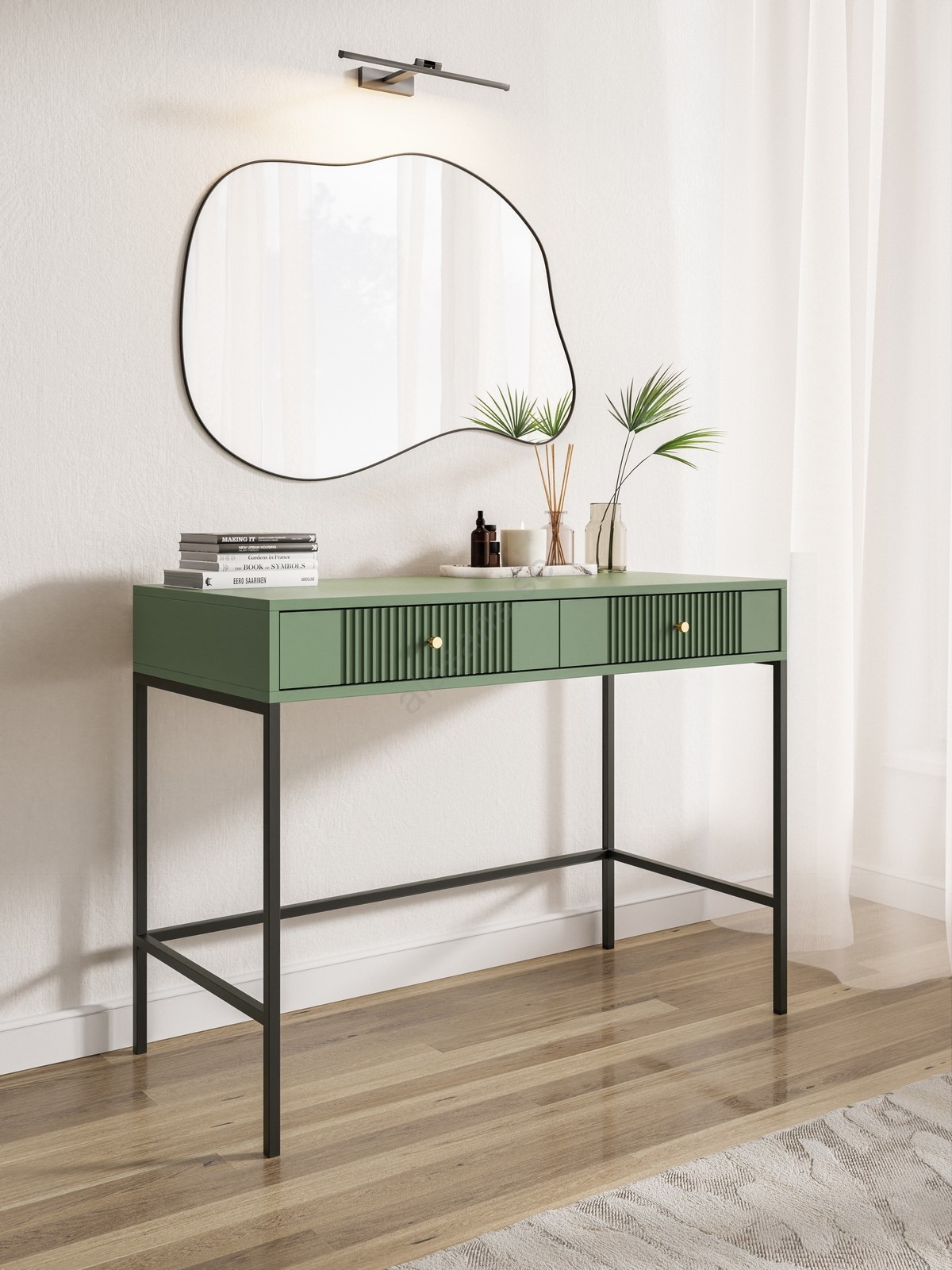 • Det har två lådor dekorerade med vertikala räfflor för en raffinerad visuell effekt.