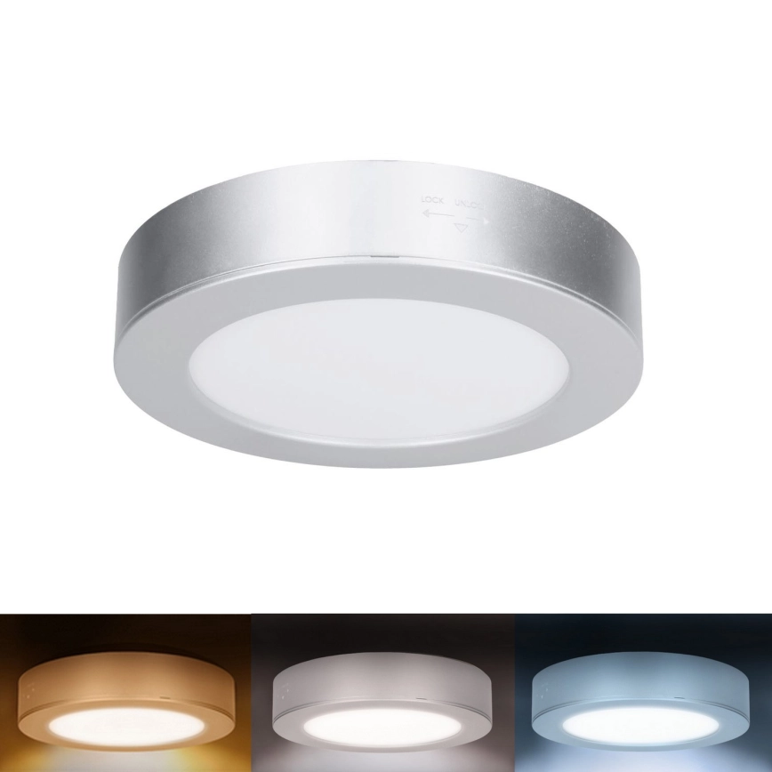 Solight WD240-S - LED-panel 2-i-1 LED/12W/230V 3000/4000/6000K diam.17cm IP54 silverfärgad | Alasans