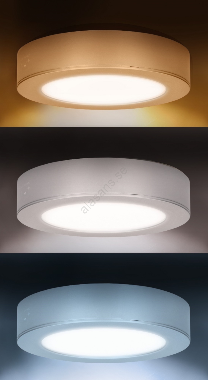 • LED 2-i-1-panel för ytmontering och infällnad, 12 W, 230 V, 3000/4000/6000 K, Ø 17 cm, IP54, vit