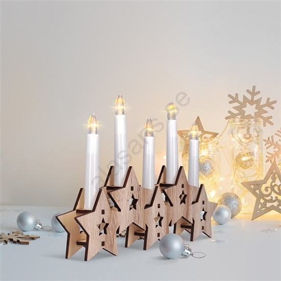 • Träljusstake med fem ljus och LED-dioder i varmt vitt ljus.