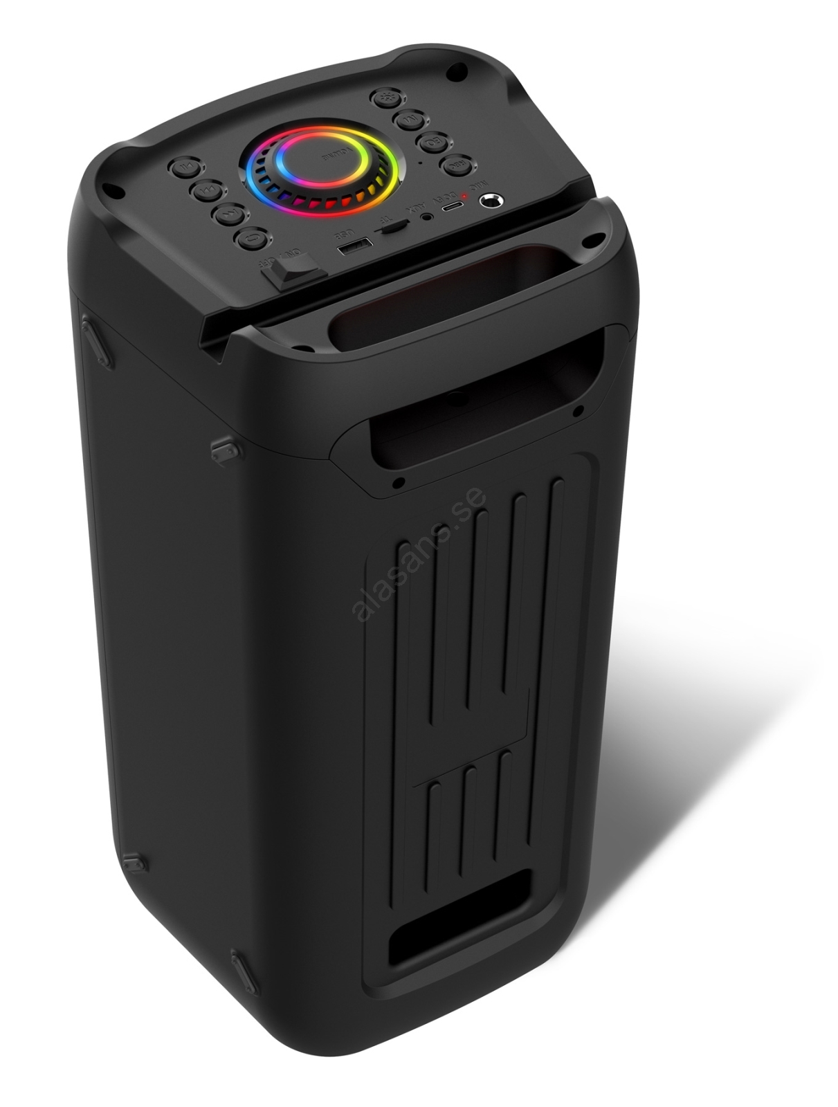• Fjärrkontroll för smidig hantering av högtalaren.