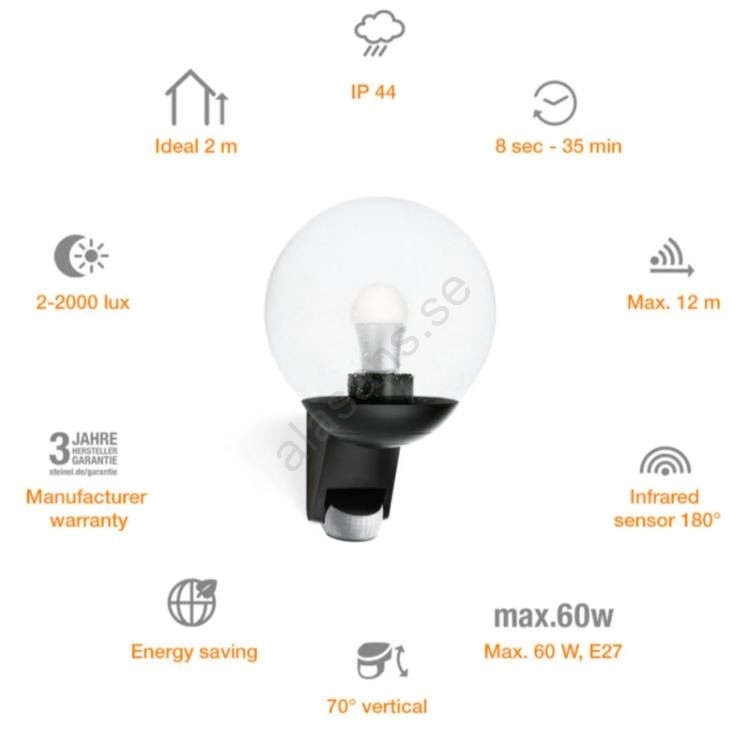 STEINEL 005535 - Utomhus Väggbelysning med sensor L585S 1xE27/60W svart IP44 | Alasans