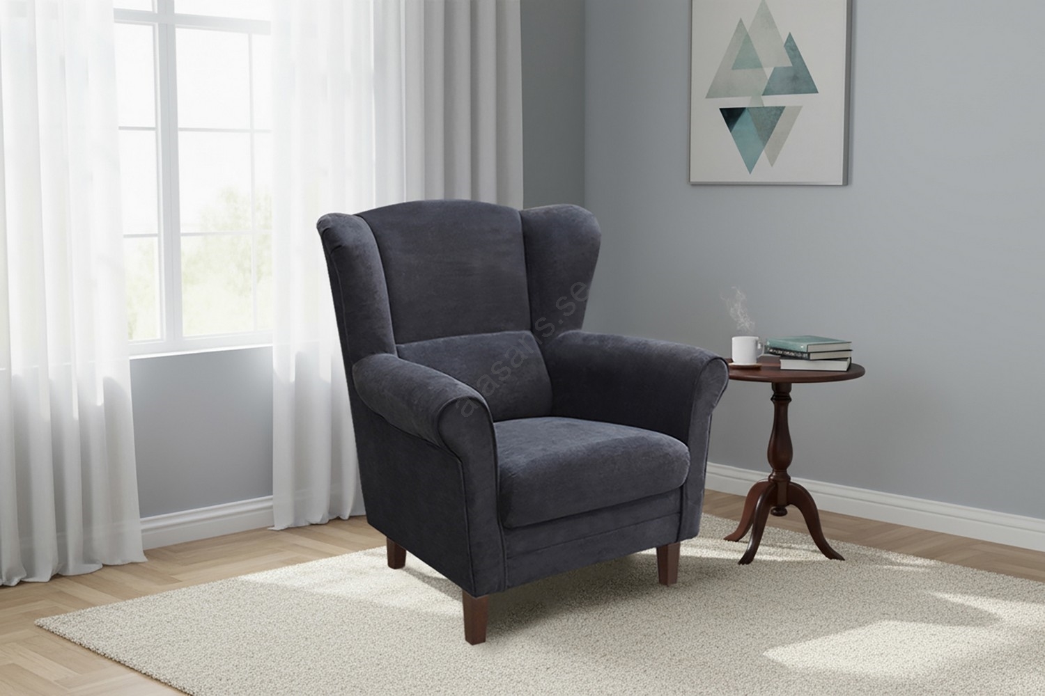• Fåtölj med tidlös design, idealisk i vardagsrummet eller sovrummet.