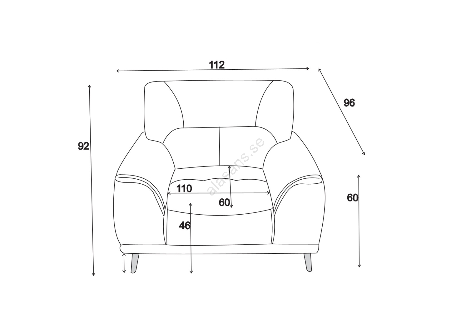 • Med en höjd på 92 cm, en bekväm sittdjup på 46 cm och ett djup på 60 cm garanterar den ergonomiskt och avkopplande sittande.