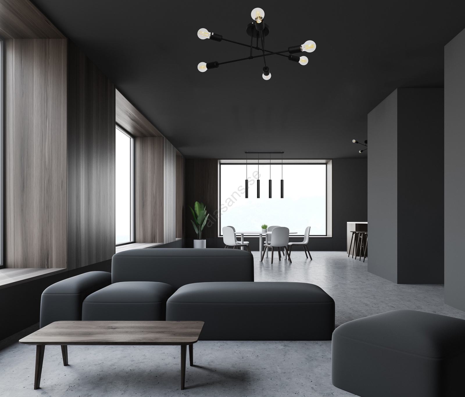 LED fäst ljuskrona CAMBRIDGE 6xE27/8W/230V svart | Alasans