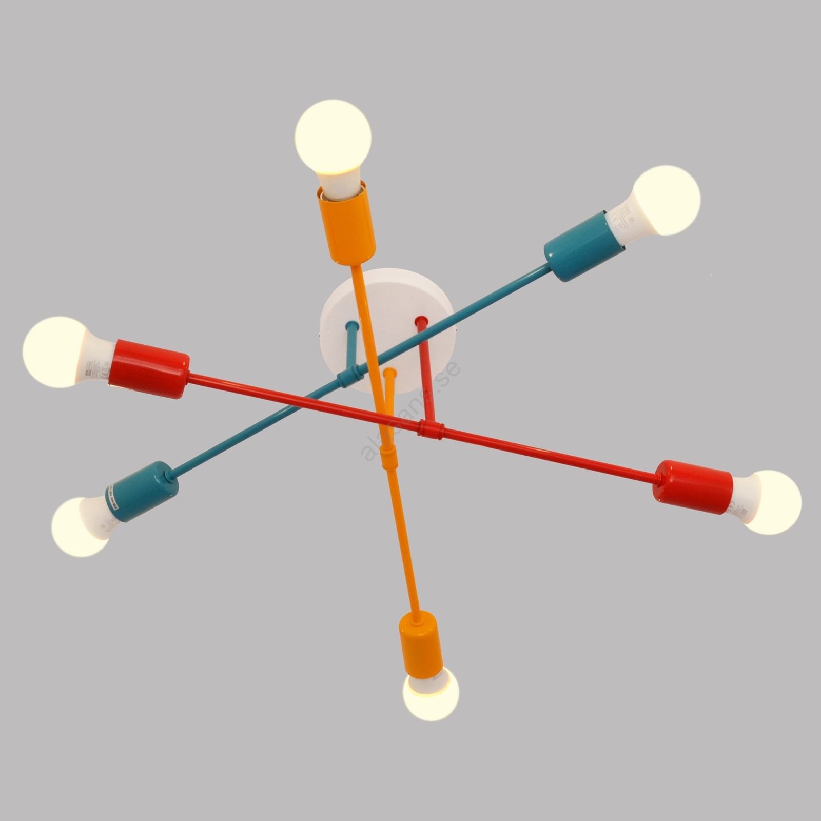 Ytmonterad ljuskrona CAMBRIDGE 6xE27/20W/230V blå/röd/orange | Alasans
