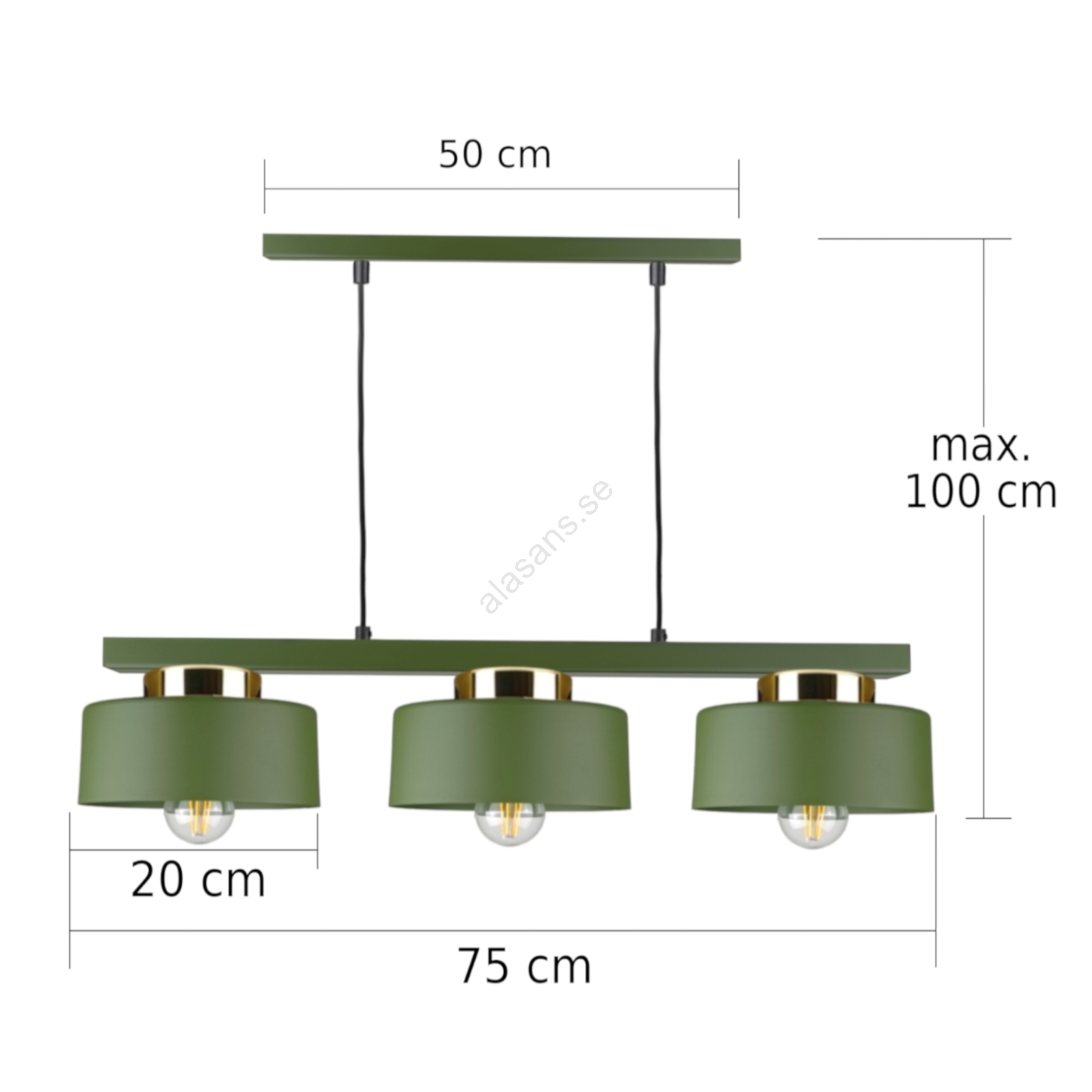 Taklampa med kabel IGNIA 3xE27/60W/230V grön | Alasans