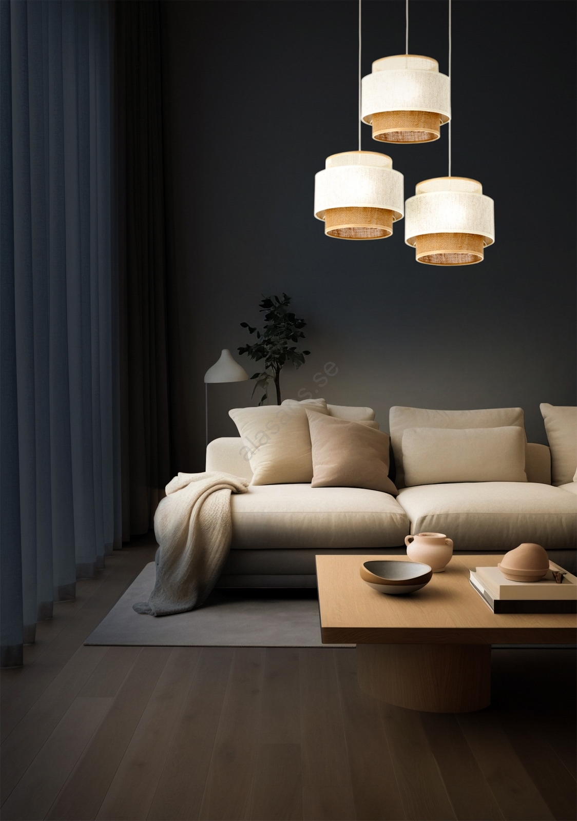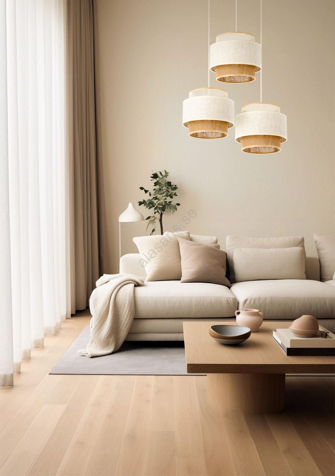 Taklampa med sladd BOHO 3xE27/60W/230V vit/jute | Alasans