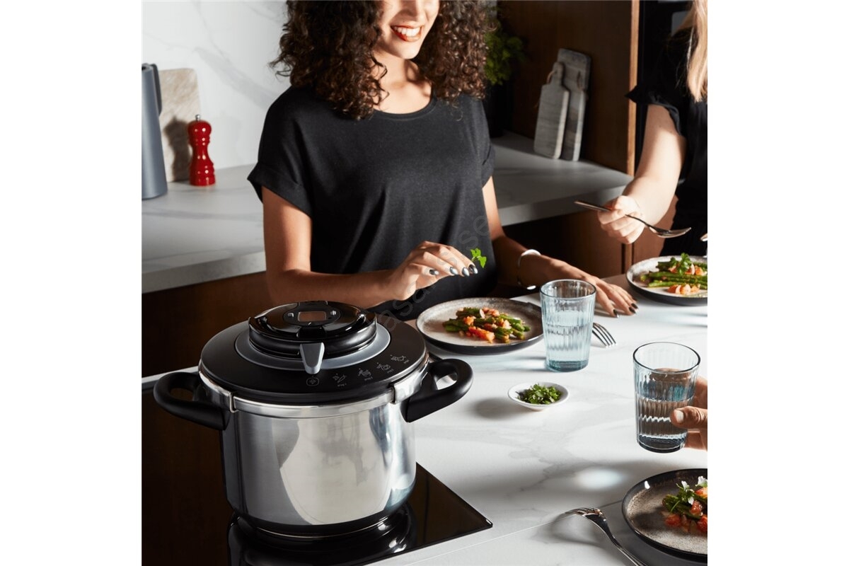 • Högkvalitativ tryckkokare med 6 säkerhetslås för upp till 2x snabbare och mer energieffektiv matlagning.
