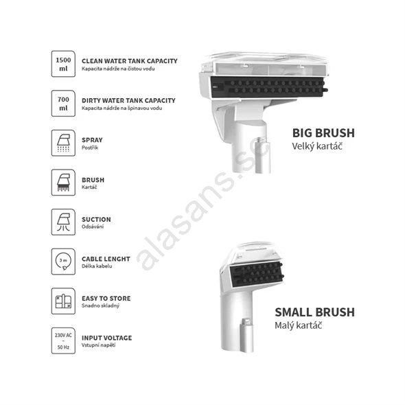• Denna kompakta och effektiva textilrengöringsmaskin är en idealisk hjälp i hemmet och i bilen.