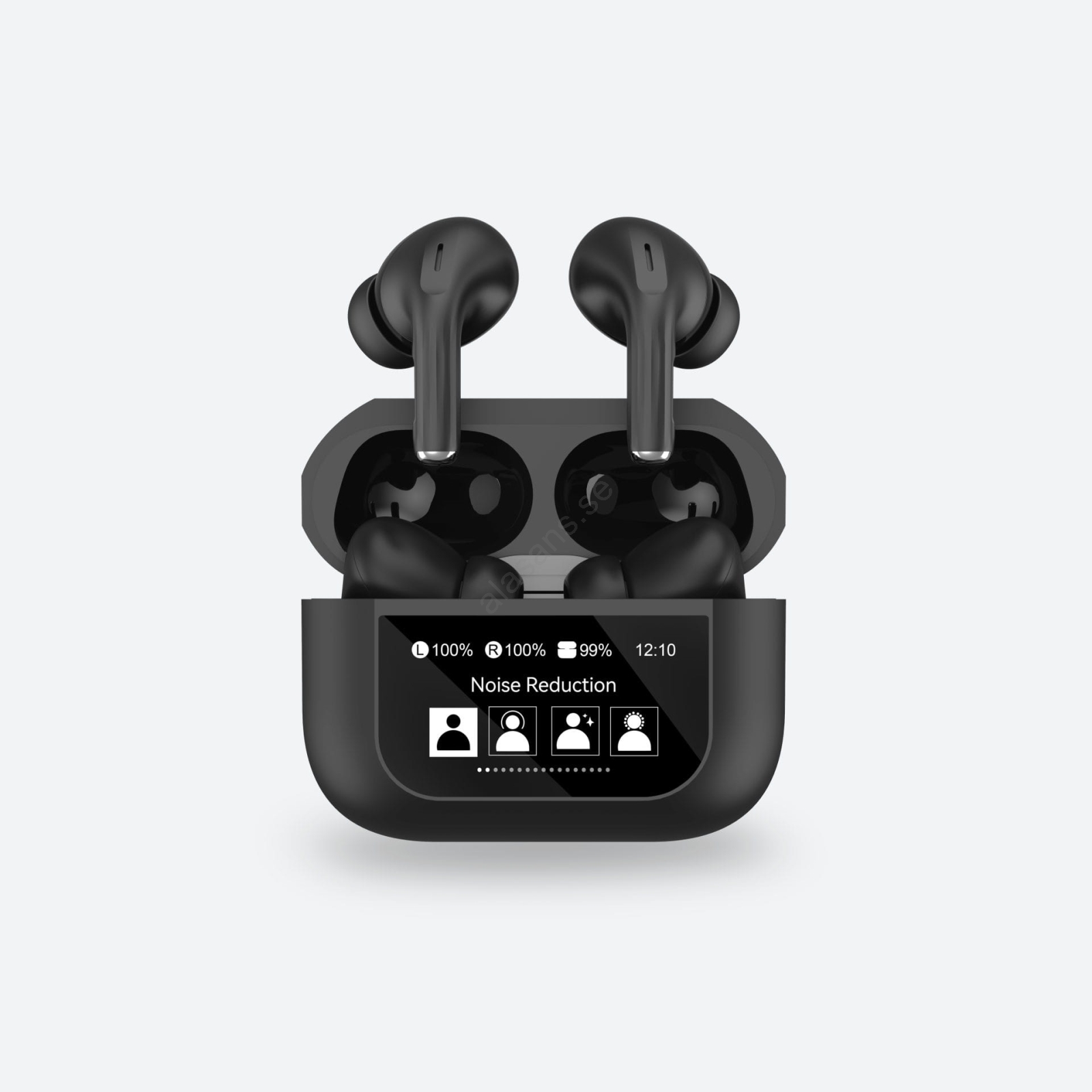 • Bluetooth 5.4 trådlösa hörlurar med ett modernt fodral och LCD-skärm kombinerar innovation, stil och funktionalitet.