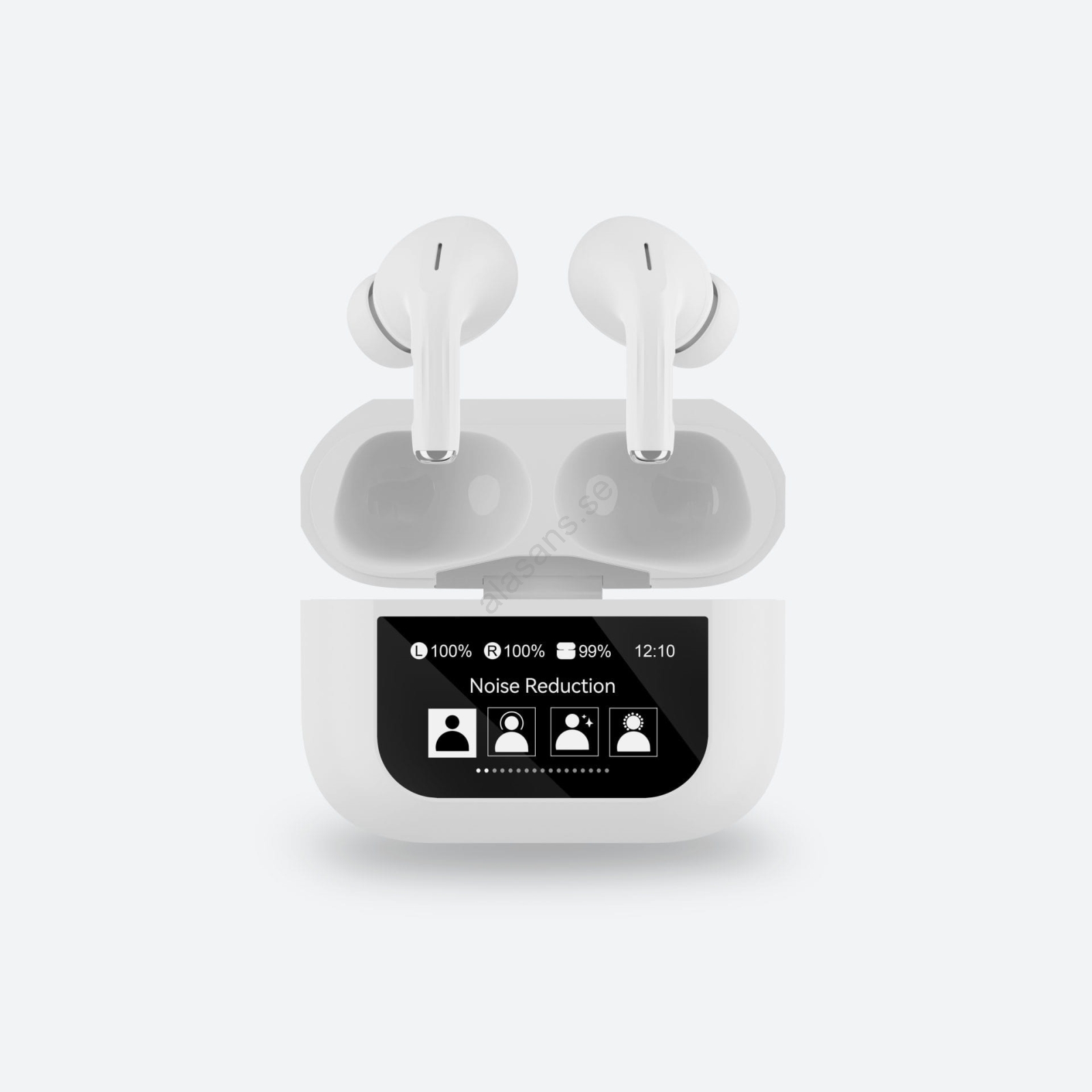 • Bluetooth 5.4 trådlösa hörlurar med ett modernt fodral och LCD-skärm kombinerar innovation, stil och funktionalitet.