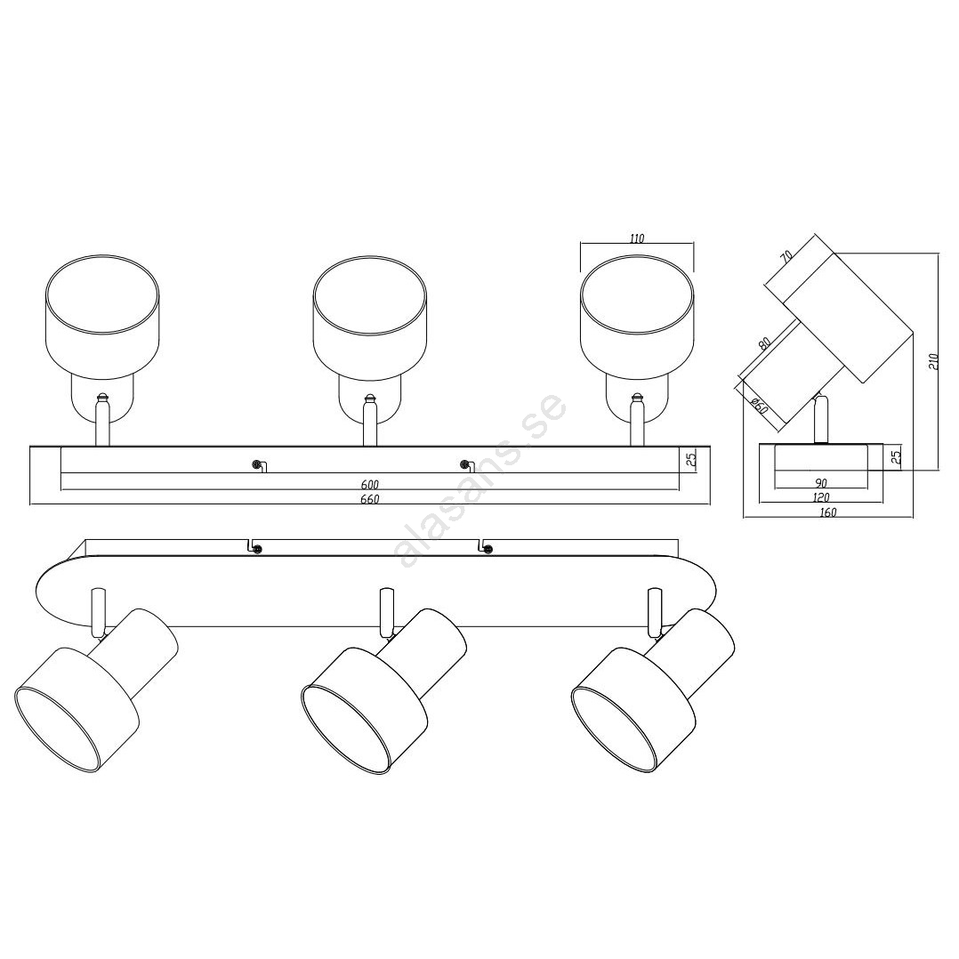 Trio - Spotlight WAILER 3xGU10/5W/230V svart | Alasans