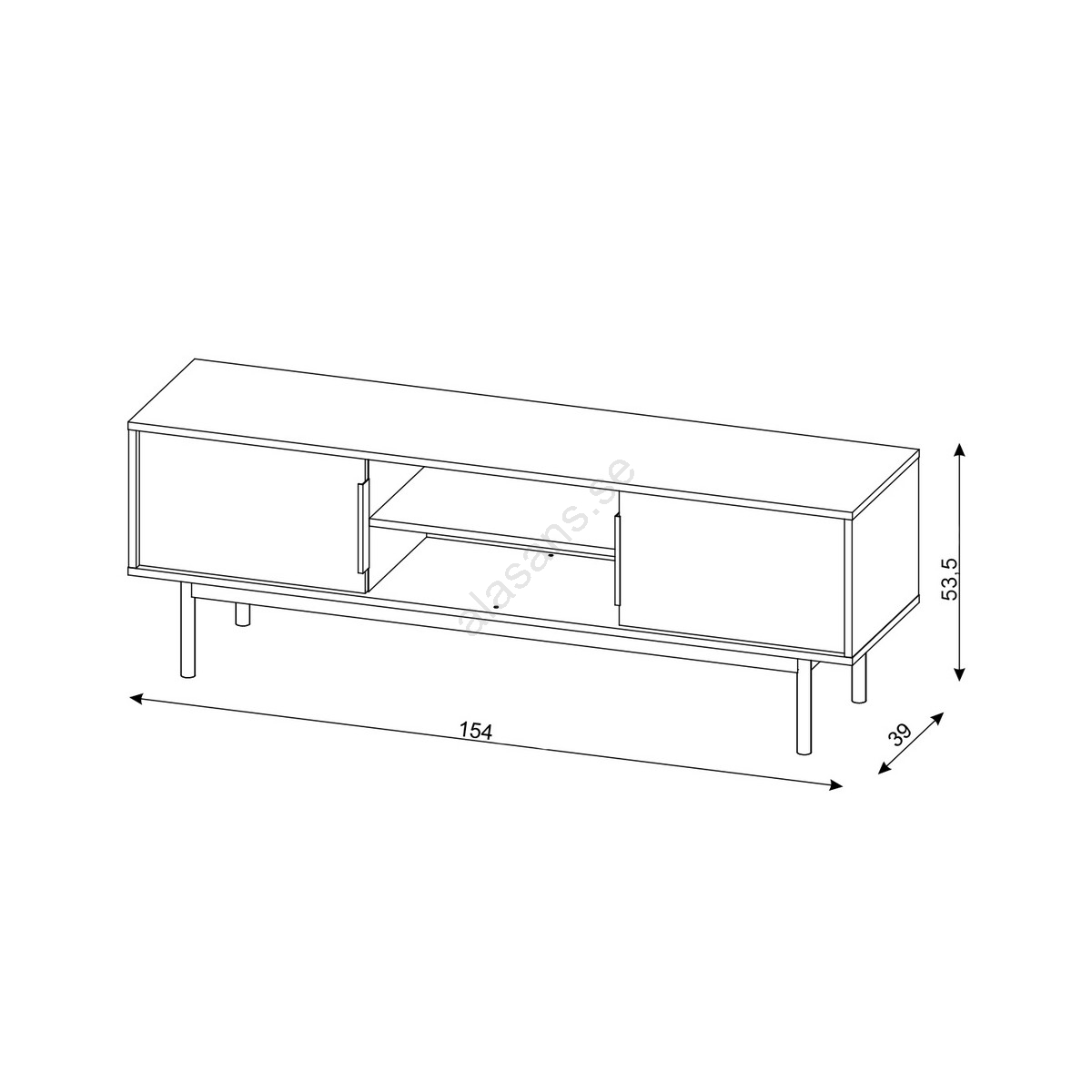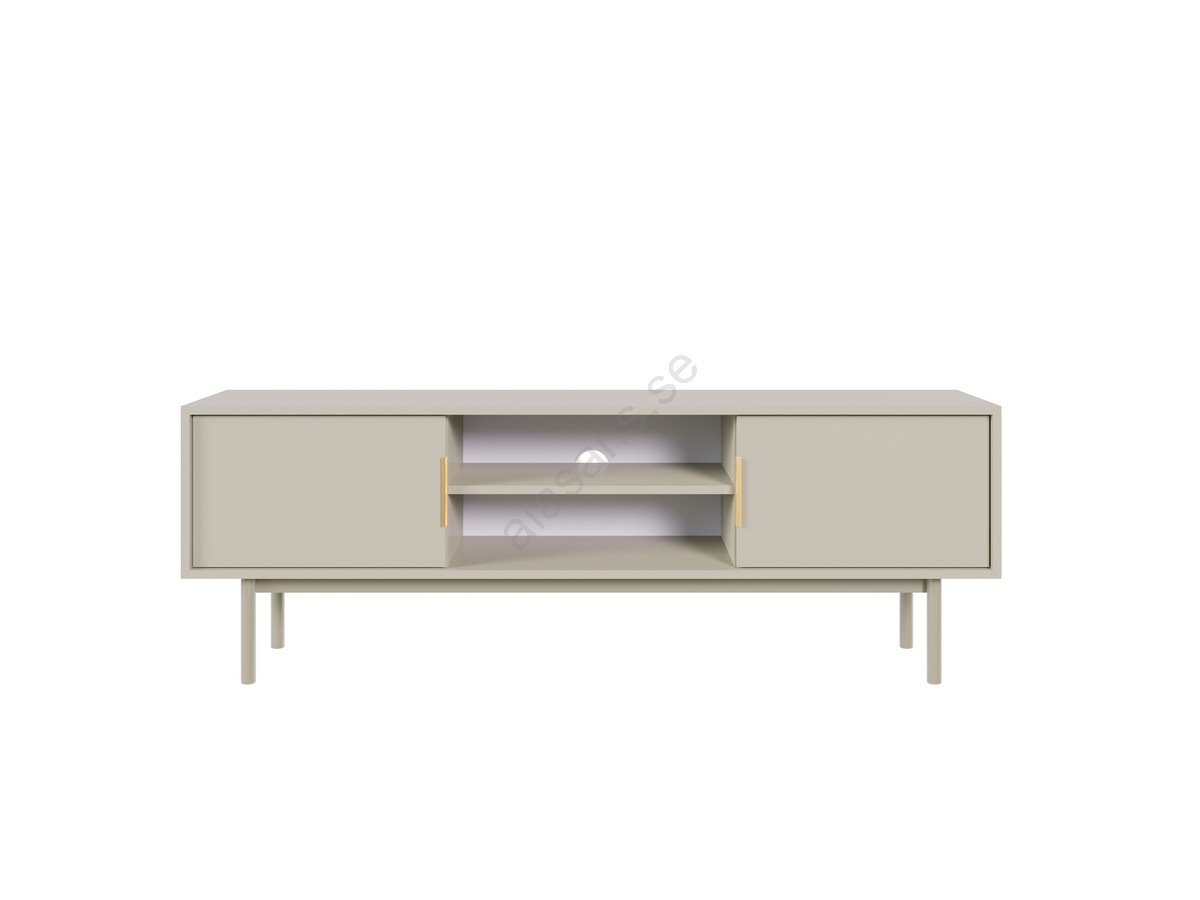 • Den har två stängda sidofack och två öppna hyllor, varav en med kabelgenomföring i mitten.