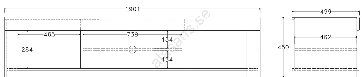 • Den har två slutna sidofack och två öppna hyllor, varav en med ett hål för kablar i mitten.
