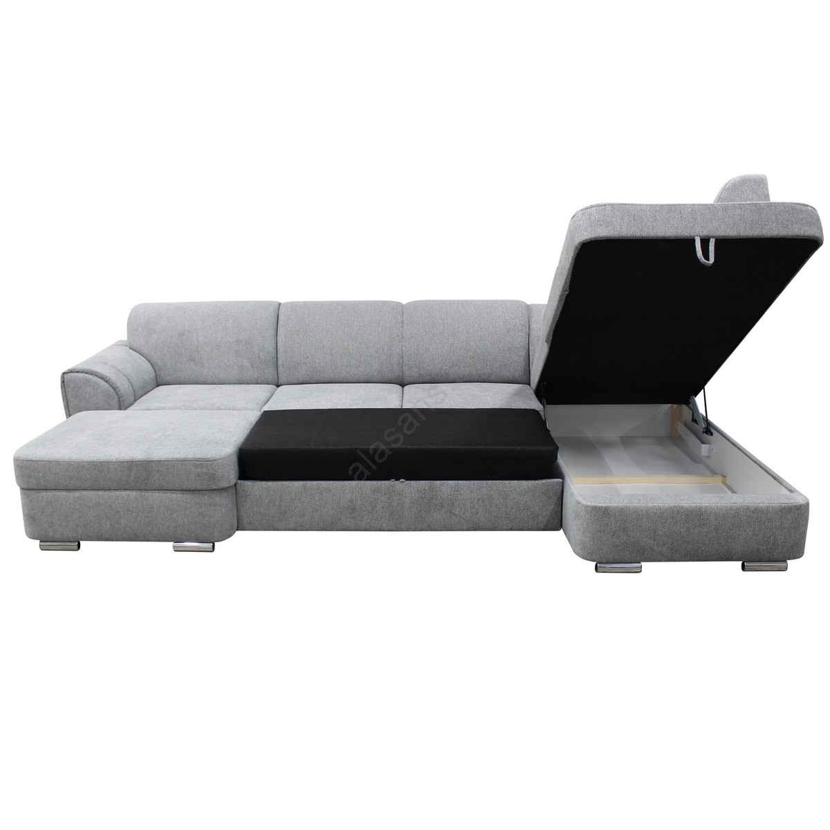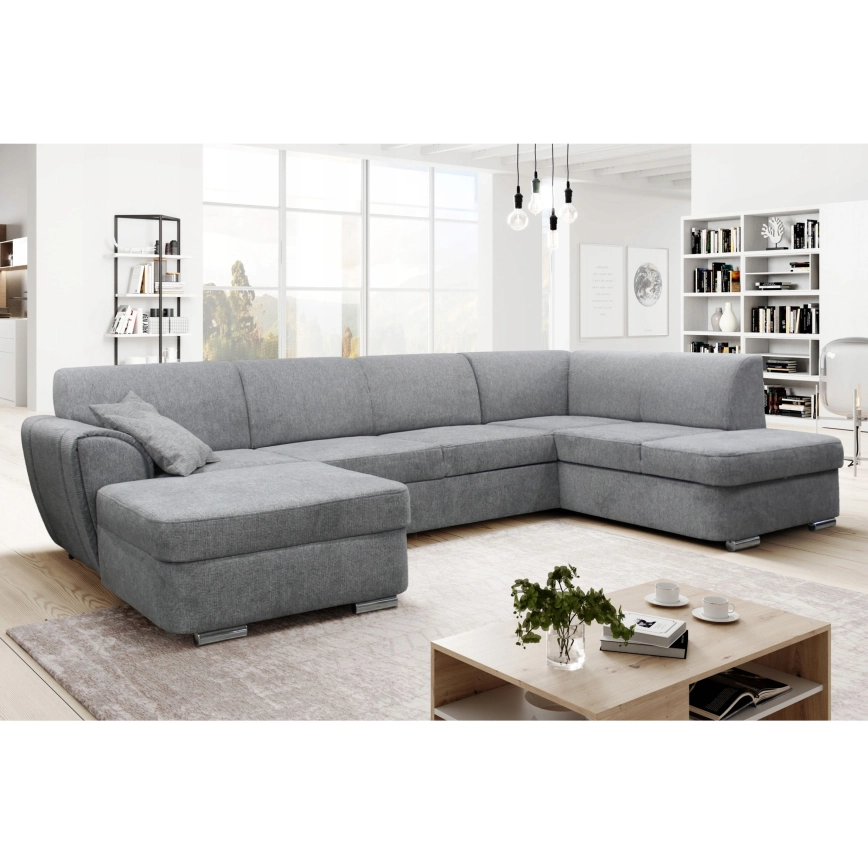 Bäddbar U-formad hörnsoffa med förvaringsutrymme SERPA, höger, grå | Alasans