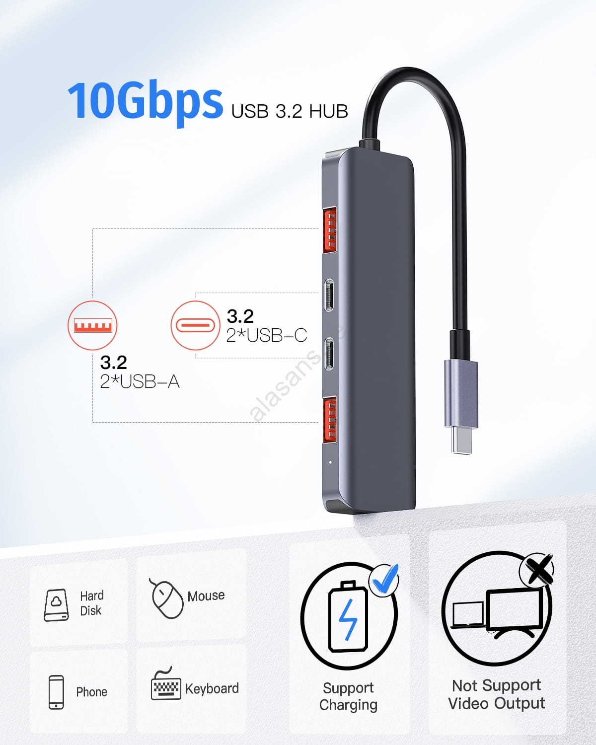 USB-C-hubb 5-i-1 med 100 W Power Delivery | Alasans