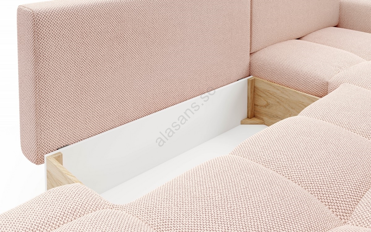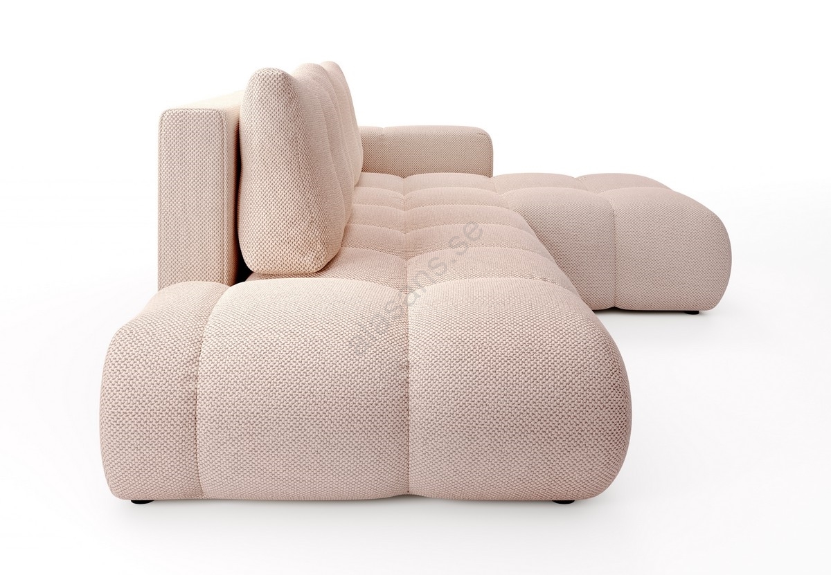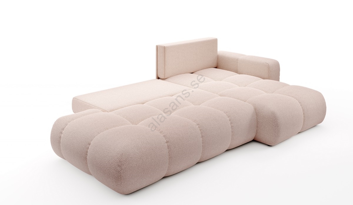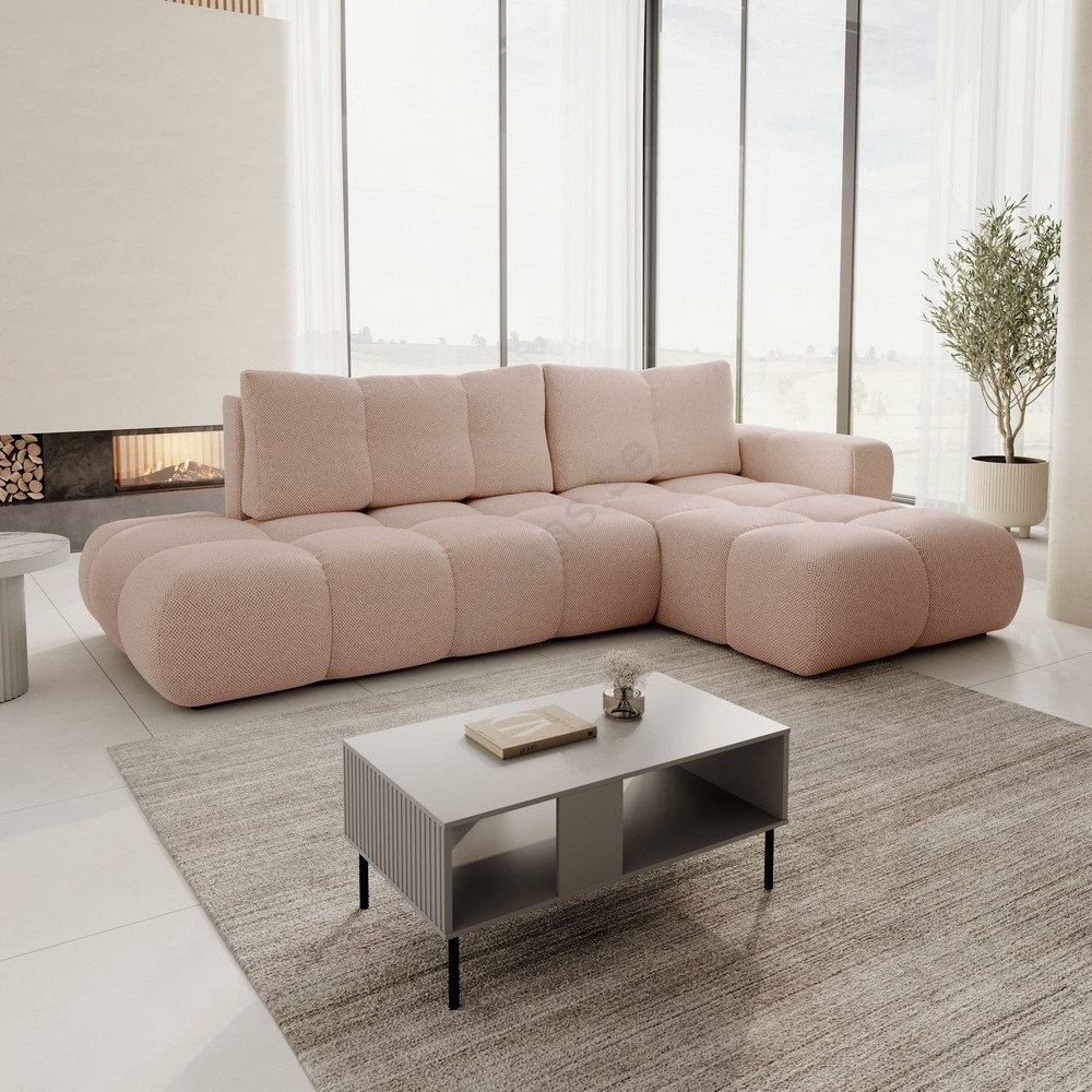 • Bäddbar klädd hörnsoffa ALMADA, höger, i L‑form med praktiskt förvaringsutrymme, rosa