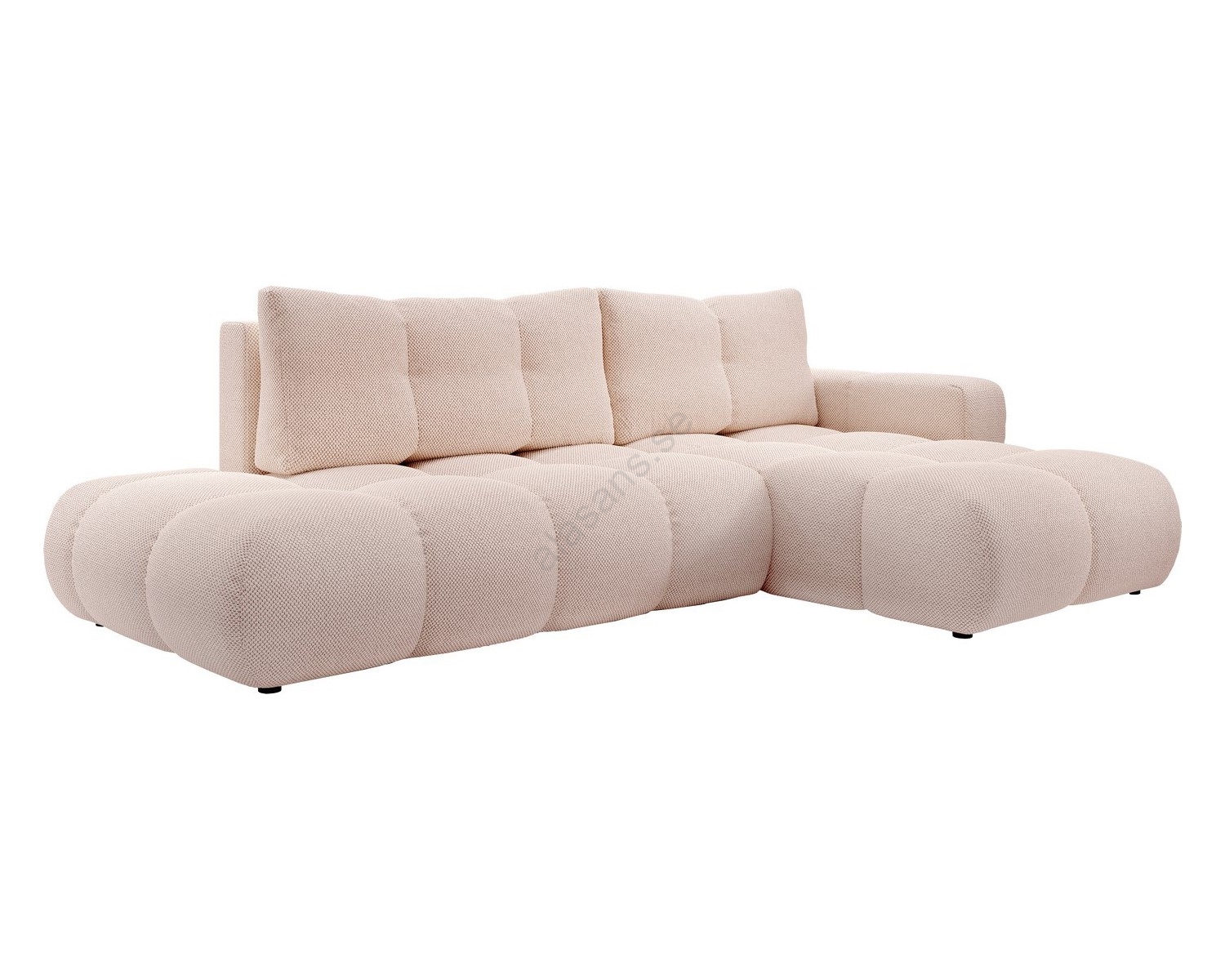 • Bäddbar klädd hörnsoffa i L-form med förvaringsutrymme ALMADA, högerutförande, beige