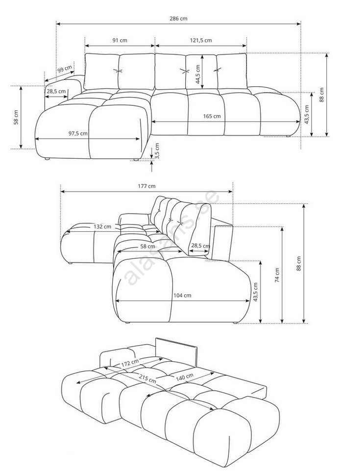 • Modern hörnsoffa med bäddfunktion ALMADA (höger hörn) är det ideala valet för alla som söker en kombination av stil, komfort och funktionalitet.