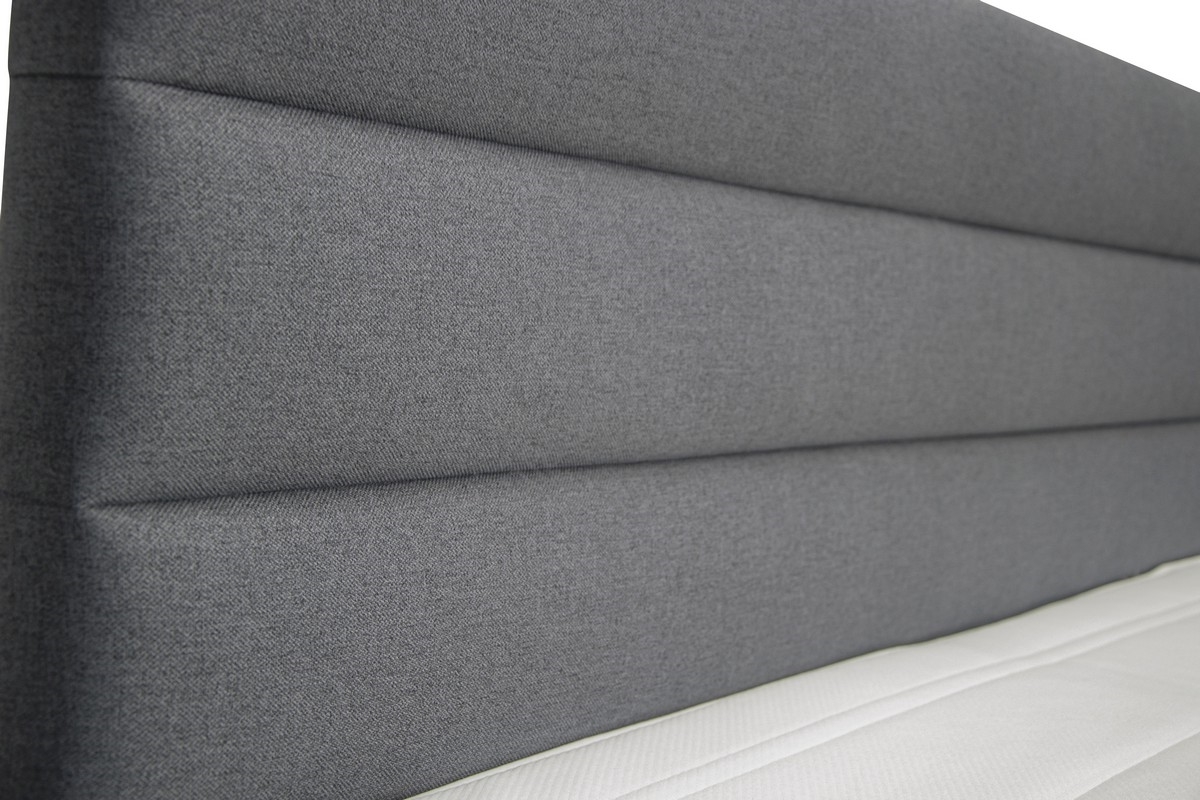 • Den höga sänggaveln med horisontell quiltning är klädd i ett ljust tyg, vilket ger sängen en elegant karaktär och samtidigt erbjuder bekvämt stöd vid läsning eller TV-tittande.