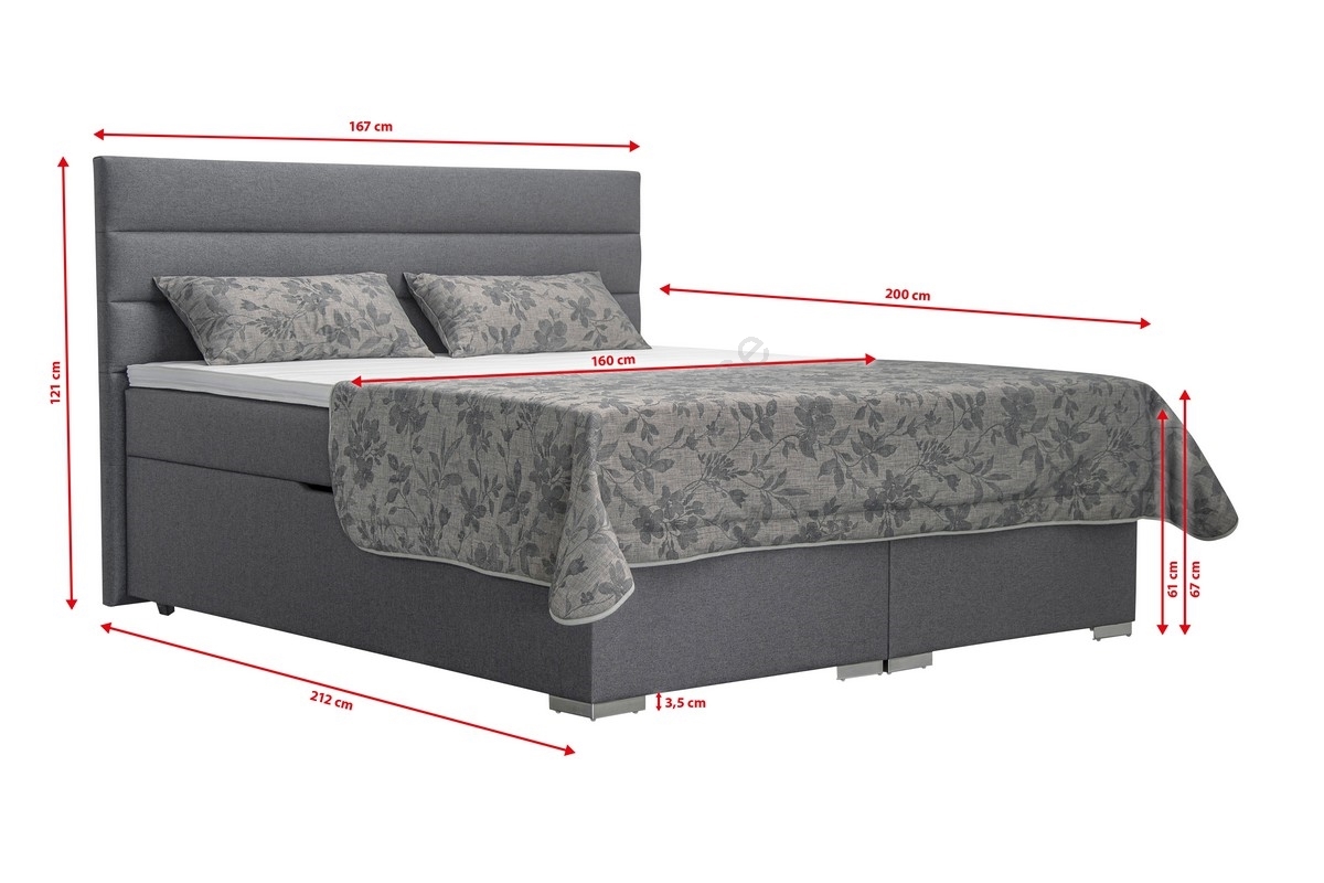 Stoppad säng med förvaring och madrasser med toppmadrass NEW BOLERO 160x200 cm grå