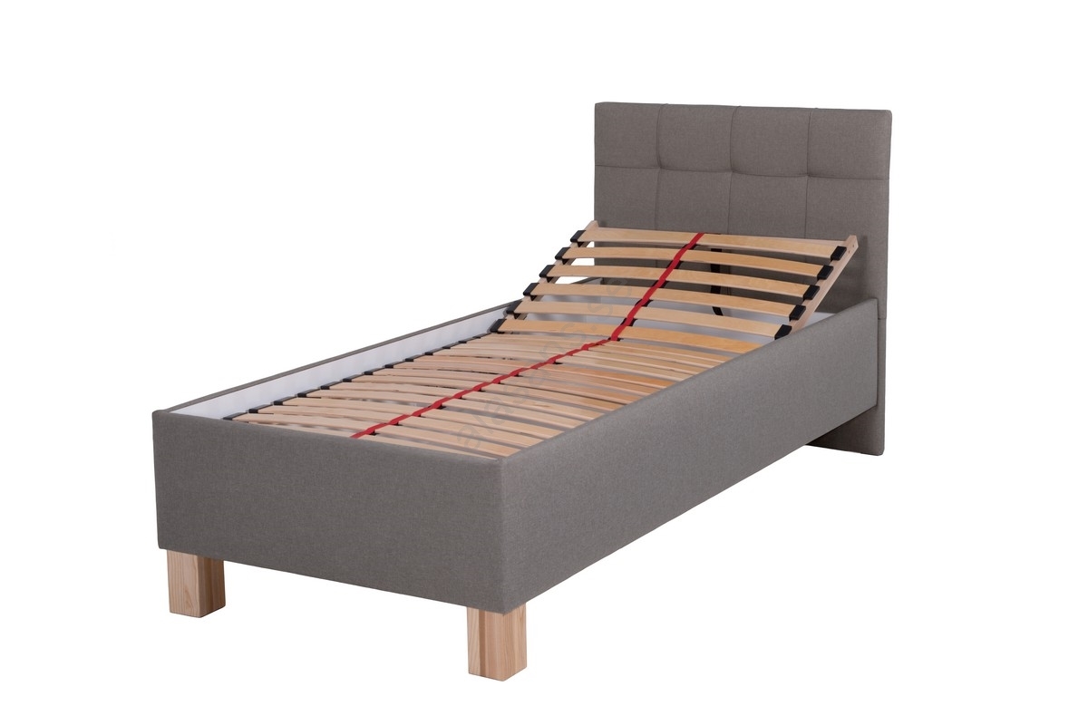• MARIA ONE — tygklädd säng med förvaring, 90x200 cm, utan madrass, grå