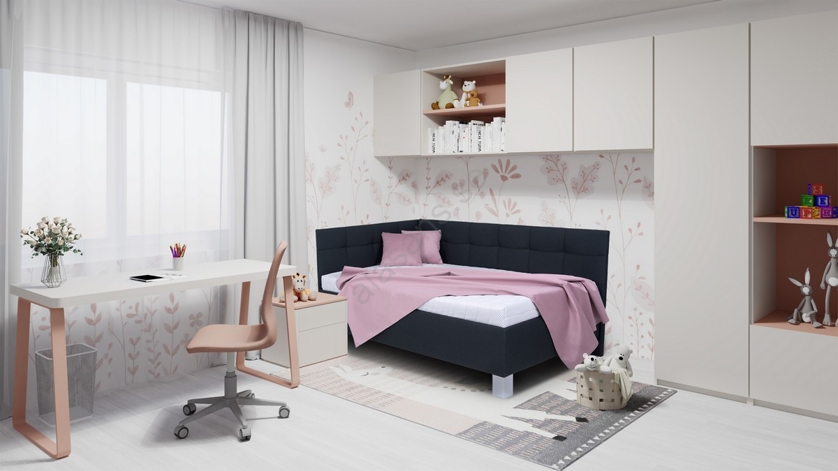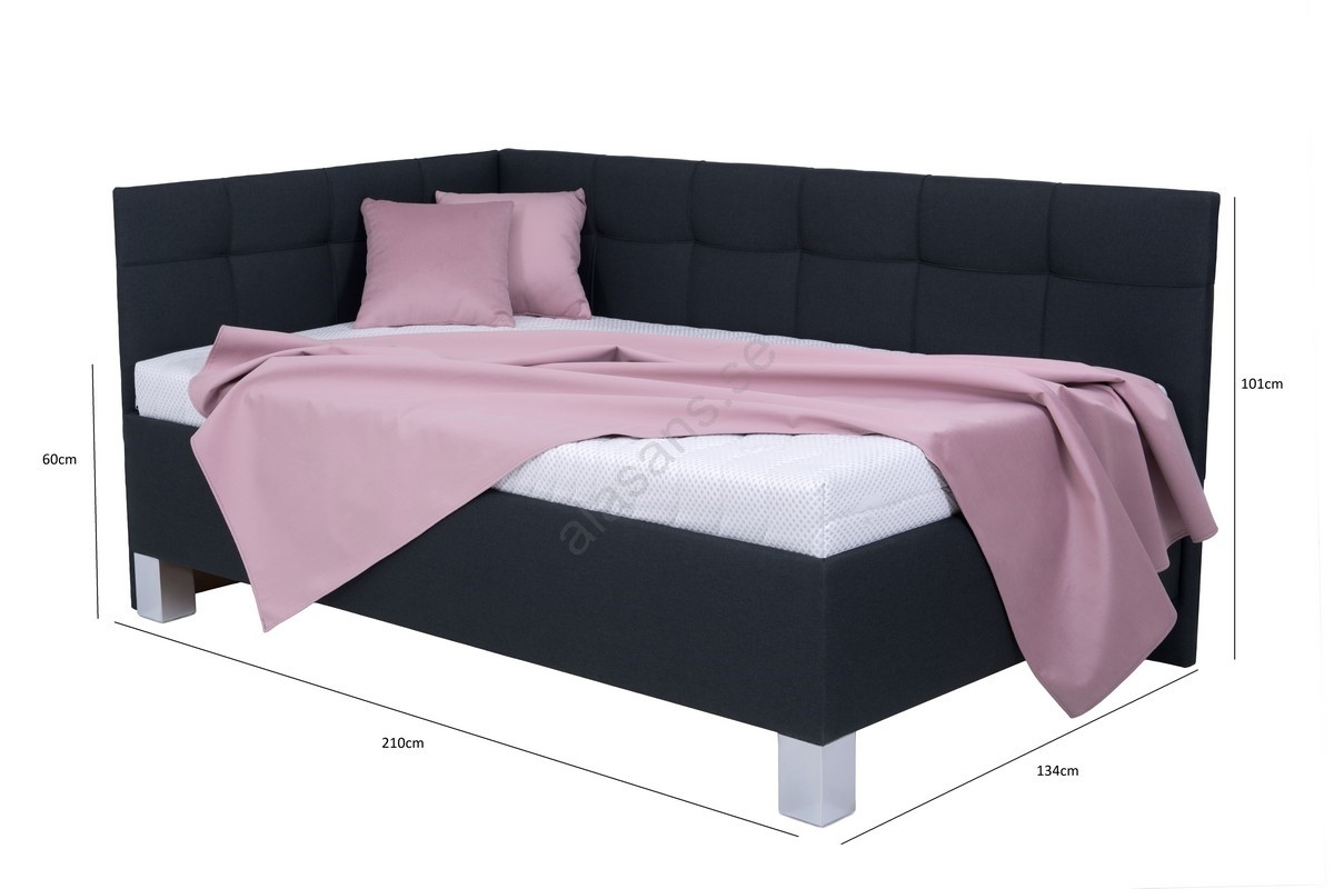 Tygklädd säng med förvaring utan madrass MARIA PETITE 120x200 cm antracit. | Alasans